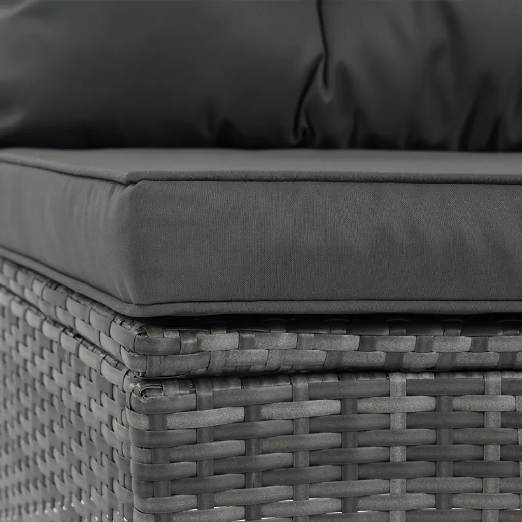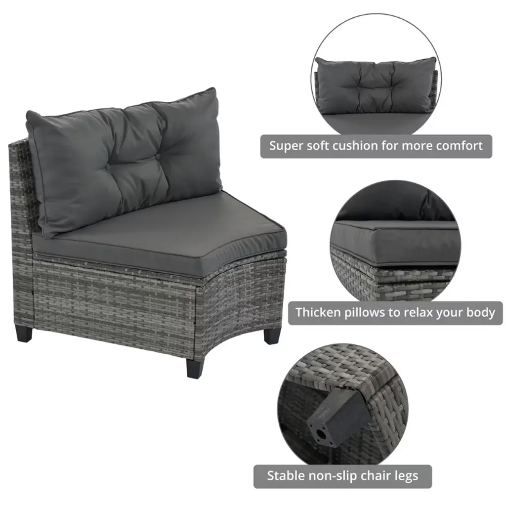Elevate outdoor gatherings with this curved, modular sofa set. Its modern half-moon design fosters connection while PE rattan and steel frame ensure weatherproof durability. Thick, waterproof cushions and ergonomic support guarantee comfort during long lounging sessions. Rearrange pieces to suit patios, gardens, or poolside areas—perfect for hosting or solo relaxation. Tempered-glass tables add functional elegance, securely holding drinks or décor. Easy assembly lets you quickly create a chic outdoor retreat. Built to resist fading, moisture, and wear, this set combines style and resilience for years of alfresco enjoyment.