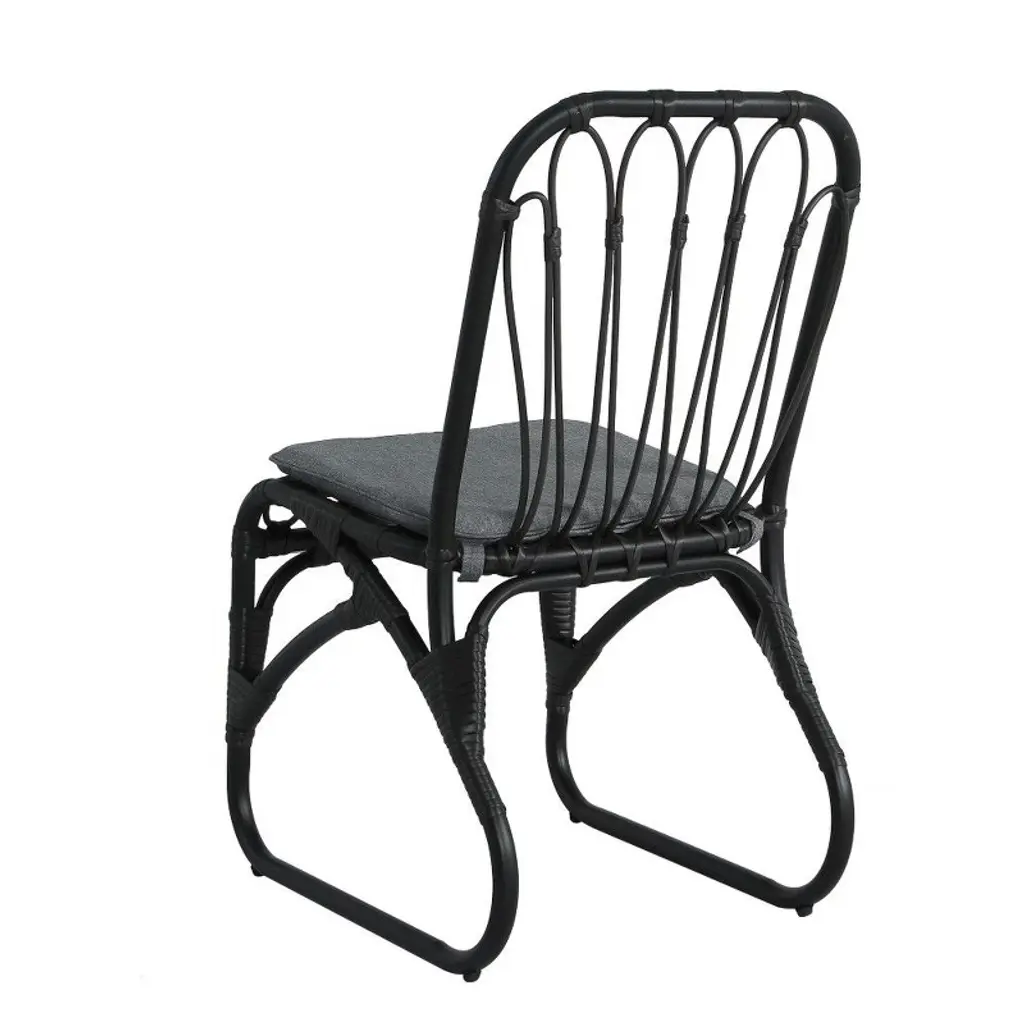 This outdoor dining chair features a rust-resistant iron frame with hand-woven rattan. It features a thick, washable seat cushion and a petal-shaped backrest. It is durable and has adjustable feet. It's ready for use right out of the box, requiring no installation, making maintenance easy. Its stylish design is suitable for a variety of outdoor settings, offering the perfect combination of durability, comfort, and aesthetics.