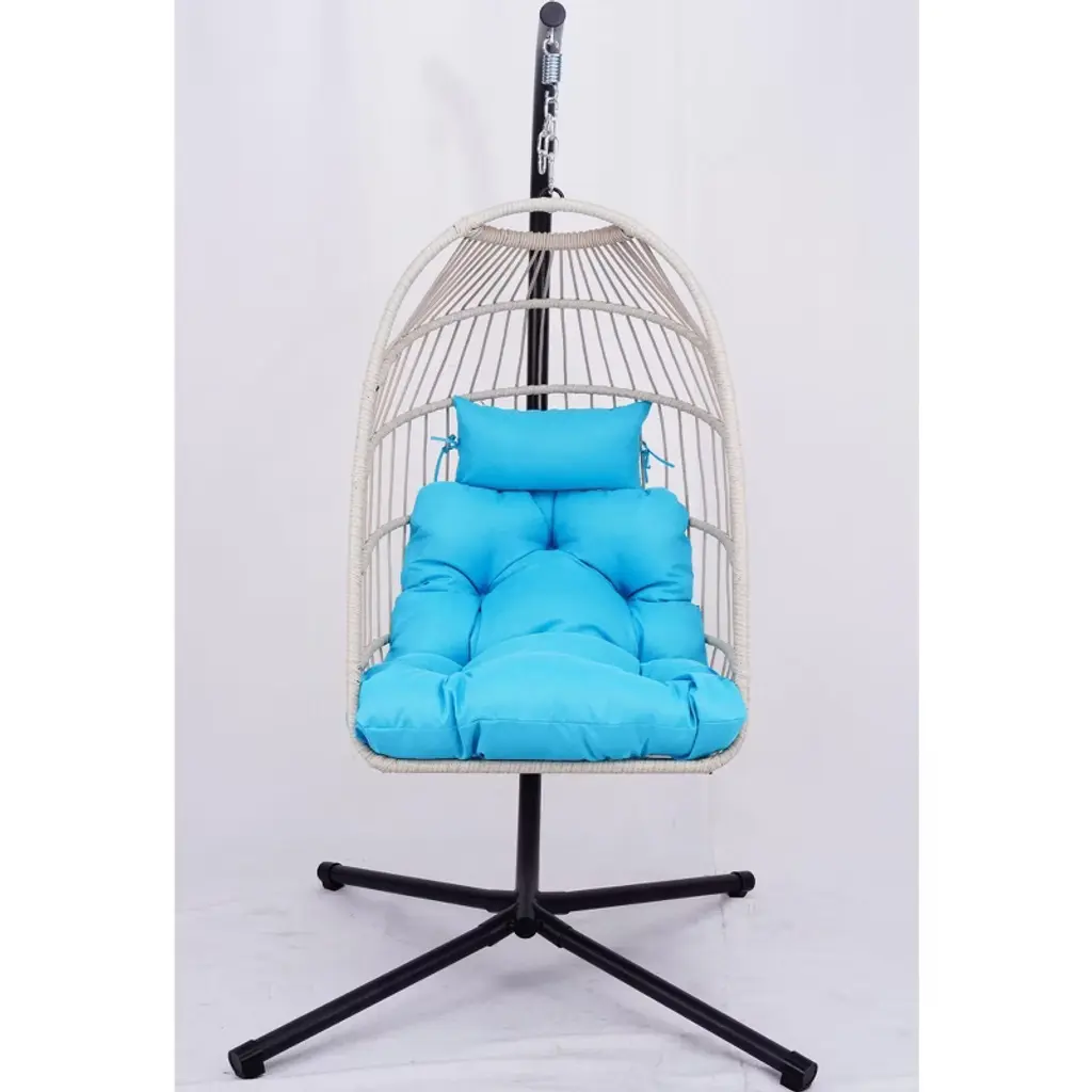Cavinas Outdoor Egg Hanging Chair With Stand,patio Wicker Swing Egg Chair With Cushion,outdoor Swing For Backyard Garden,blue