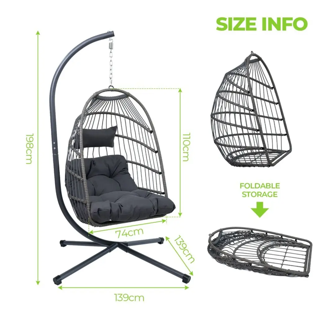 Cavinas Outdoor Egg Hanging Chair With Stand,patio Wicker Swing Egg Chair With Cushion,outdoor Swing For Backyard Garden,gray