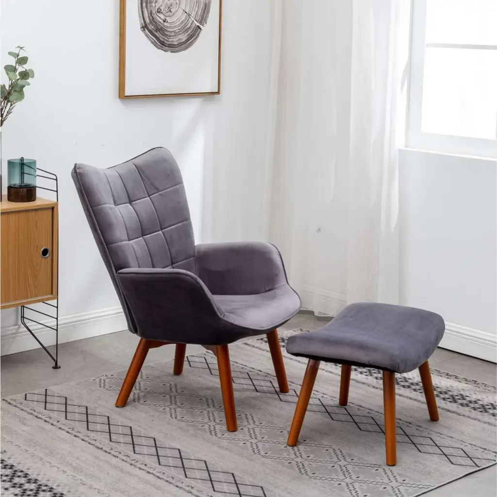Cavinas Silky Velvet Accent Chair With High Button-tufted Backrest And Ottoman,upholstered Living Room Chairs,reading Chairs For Living Room,gray