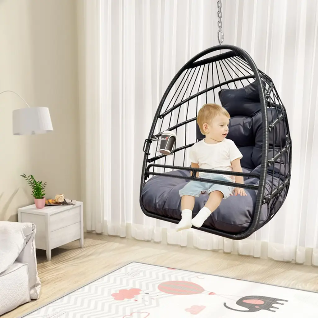 Cavinas Swing Hammock Egg Chair Without Stand,hanging Chair With Foldable Frame And Uv Resistant Cushion,patio Swing For Backyard Balcony Porch,black