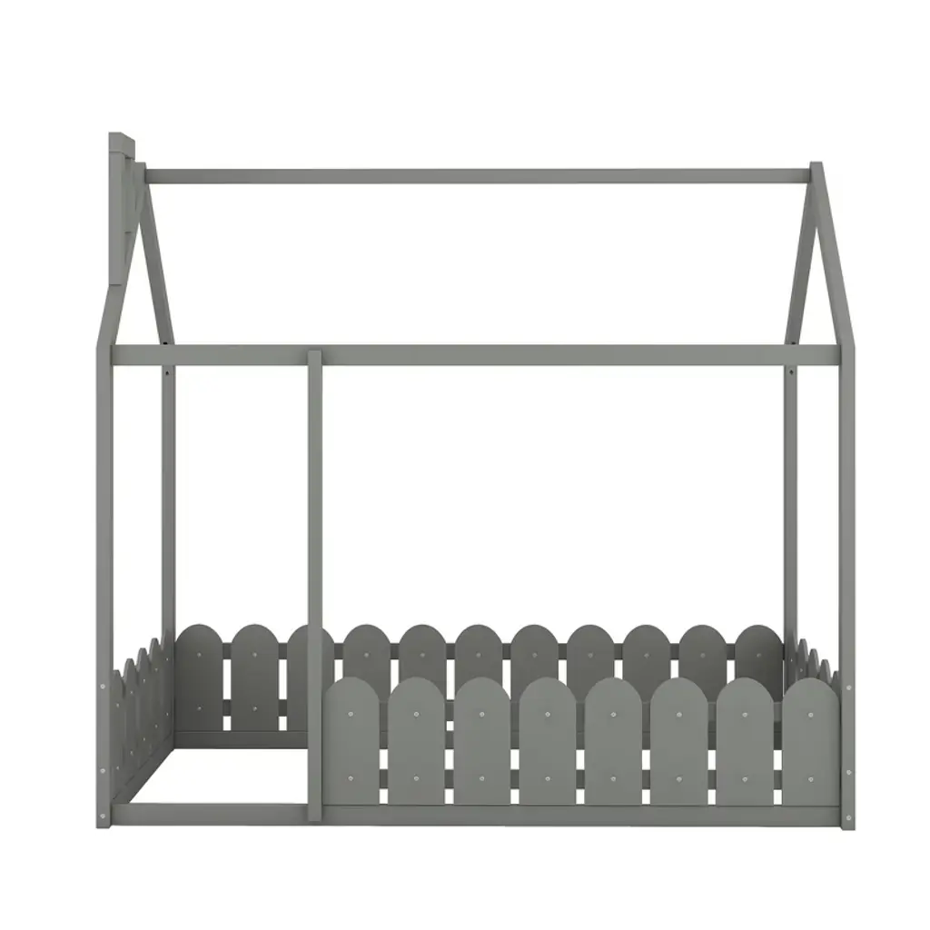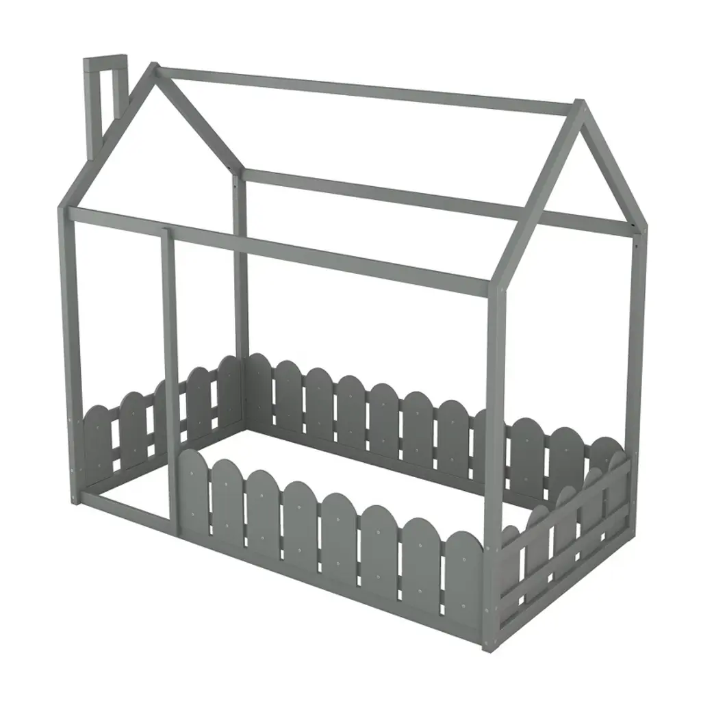 Cavinas Twin Size Bed Frame With Garden Fence,solid Wood Floor Bed For Kids Room,bedroom,gray