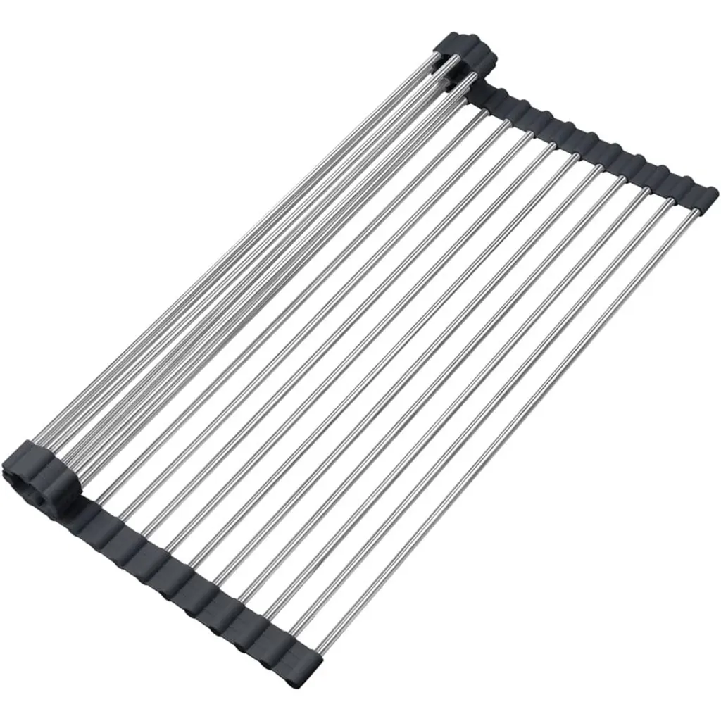 Cb Home 18'' X 13'' Multipurpose Stainless Steel Roll Up Drying Rack, Multifunction Kitchen Sink Roll Up Drying Rack - 18''x13'' - Black