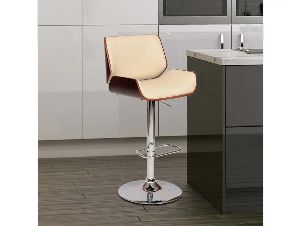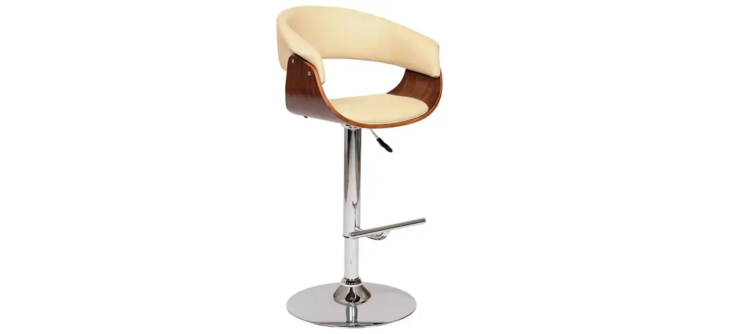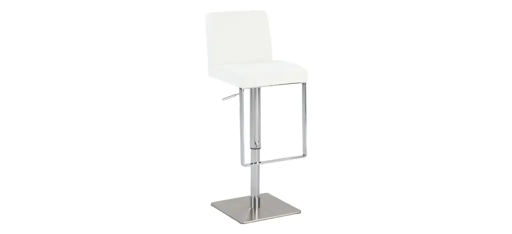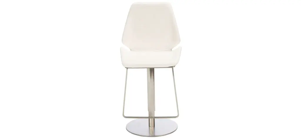 The Cecil adjustable stool, fully upholstered in white faux leather. A footrest is provided for extra comfort.