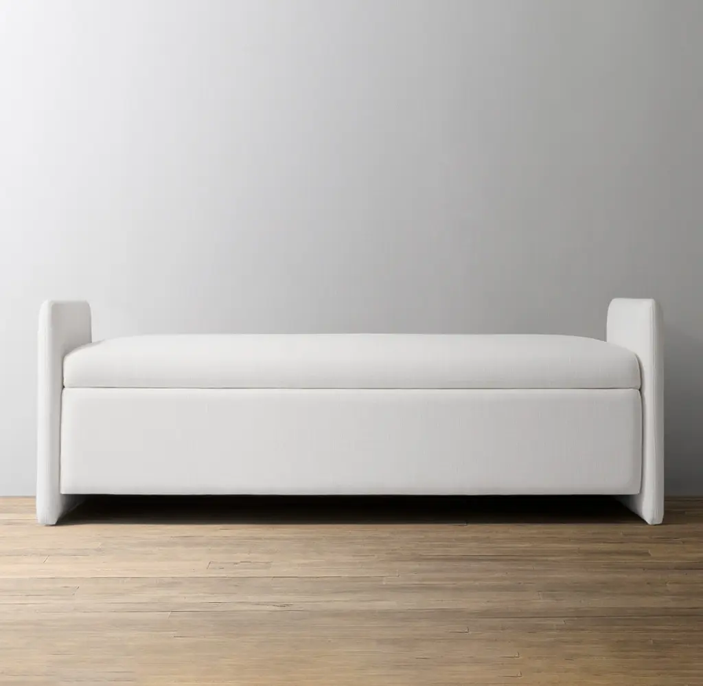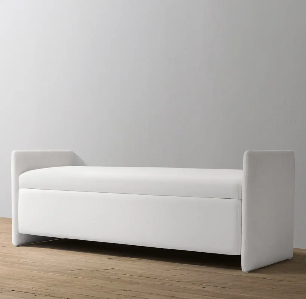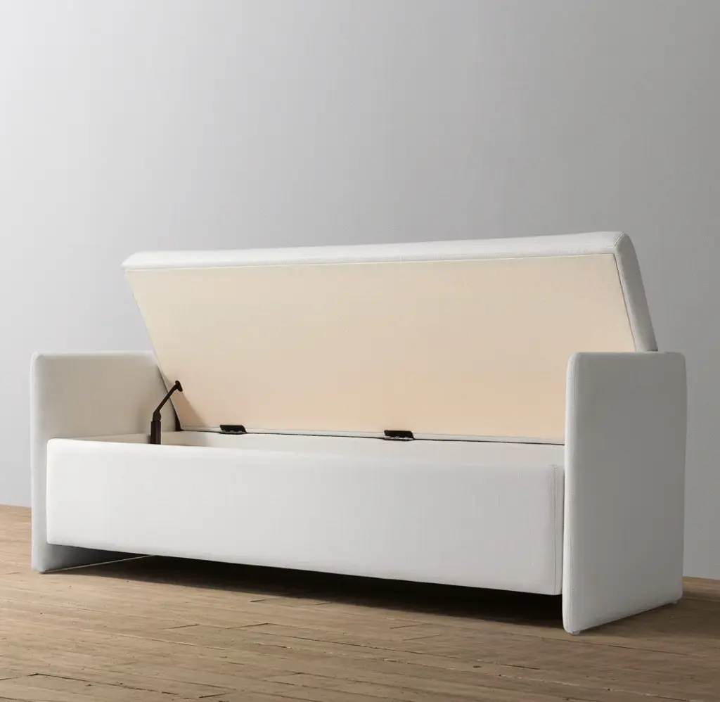 High, straight sides give our bench its chic, modern vibe, while generous cushioning and soft upholstery promise lasting comfort. A storage compartment smartly concealed beneath the seat helps corral wayward blankets, books and more.