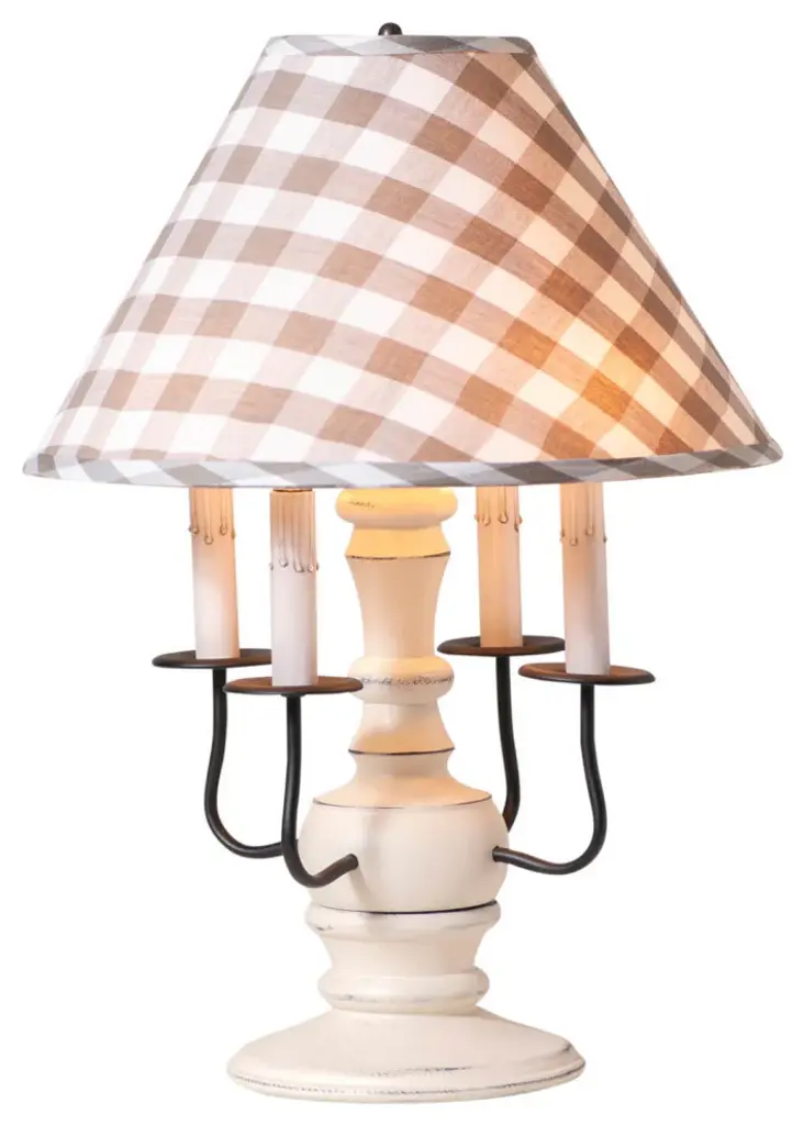 Cedar Creek Lamp With Fabric Gray Check Shade, Rustic White