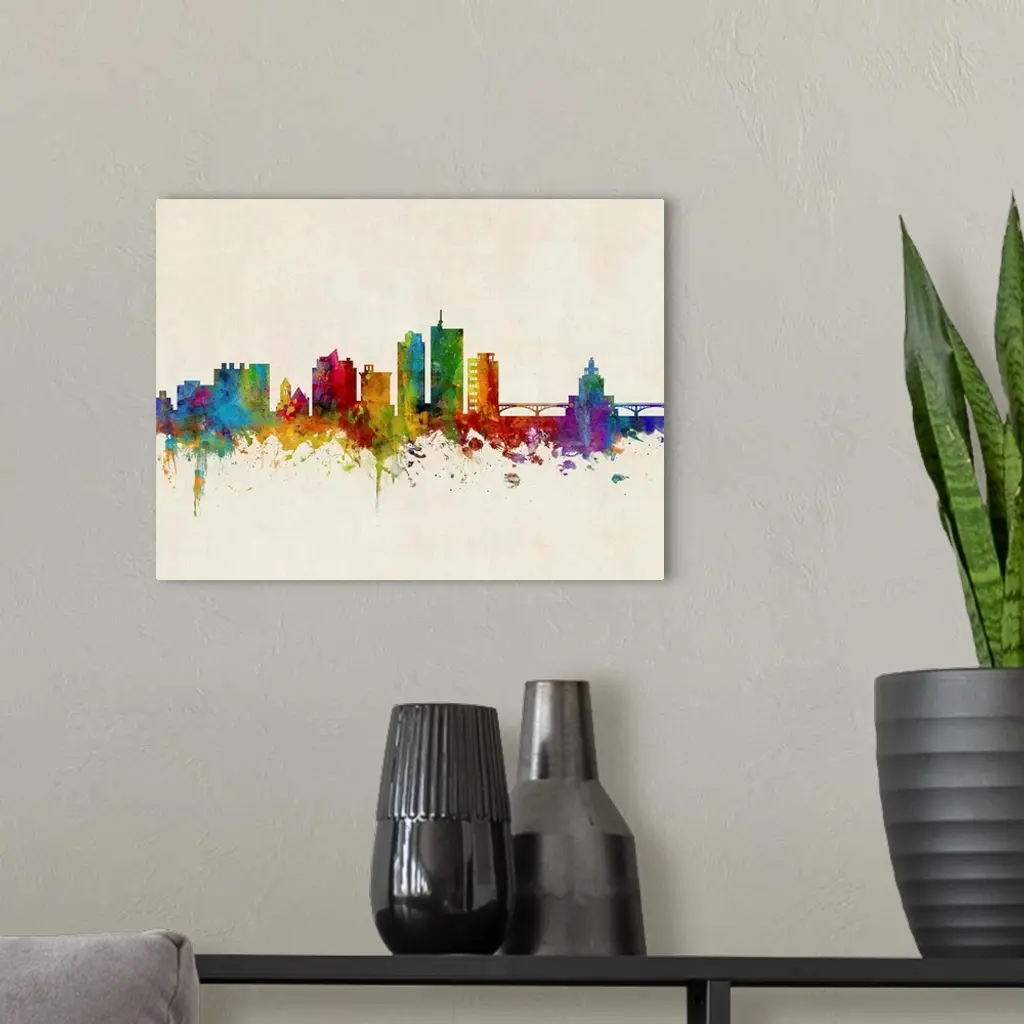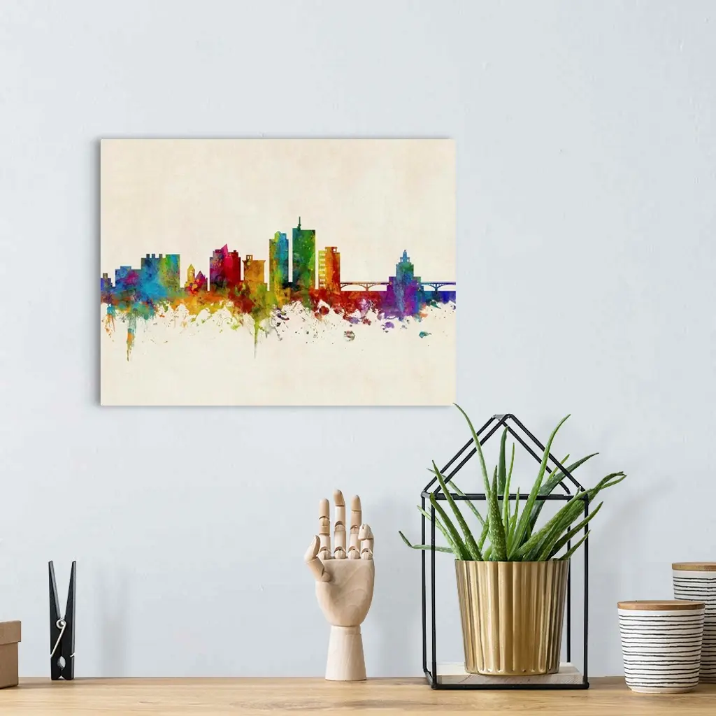 Watercolor art print of the skyline of Cedar Rapids, Iowa, United States