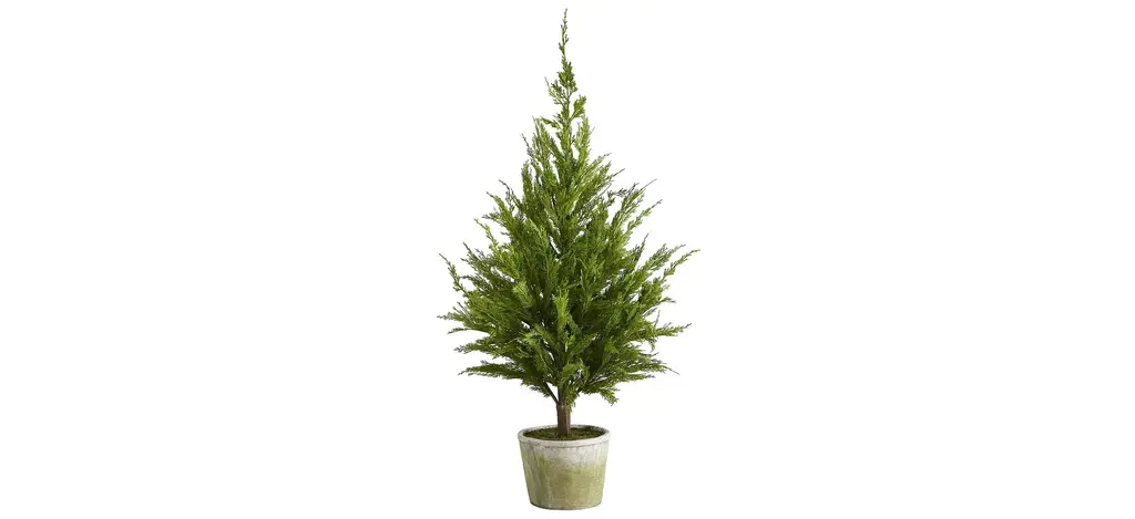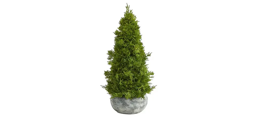 This realistic-looking pine cedar is virtually perfect and when you realize it's artificial; you'll have to take a second look! The perfect way to bring low maintenance greenery into the home; this marvelous evergreen looks amazing in an entry; hallway; family room; or den.