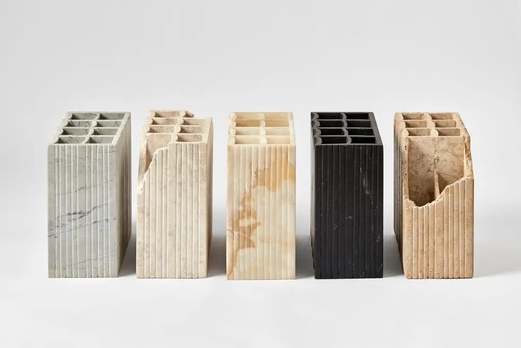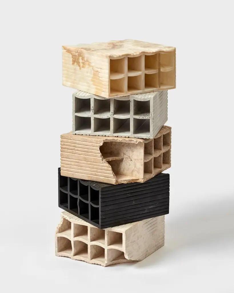 Ceiling Brick by RF StudioDimensions: W 15 D 30 x H 30 cm Materials: Andes StonesAlso Available: Other finishes available,The brick is a generic constructive element that constitutes part of the urban imaginary. In Peru, moreover, its image is linked to the phenomenon of migration from the countryside to the capital that began in the 1940s and involved new constructions of collective space on the outskirts of Lima, new urban centres in the different regions of the country and new forms of self-construction of housing. Based on the concept of constructive material, Bricks suggests the question of whether there is continuity between the materiality of the natural territory and the materiality of the contemporary urban habitat; and whether it is possible to recover the relationship with the diversity and particularity of each of the ecosystems we inhabit. The pieces pose the fragile balance between the processes of material transformation within nature and the systems of production, extraction and construction of our society.ESTUDIO RF is located in Lima, Peru. We are dedicated to the research of the contemporary habitat and natural environments in the Peruvian context, seeking to dissolve established limits between them. Our multidisciplinary team is conformed by visual artists, architects, traditional artisans, performers, designers, actors and writers. We regard art as an open field that functions like a hub that establishes new relationships between nature and human activity.We aim to rebuild the continuity between natural landscape, art and architecture by reconnecting the current urban condition with the bodily experience of being free in the wilderness. We acknowledge fluidity and non-definition of the landscape; a wild and dynamic setting were everything coexists without visible hierarchy or law.In opposition, the urban landscape is defined by social codification, segregation and segmentation of space. The values of the global market and technological modernity are creating distance and alienation in everyday life.Faced with this, we return to the heterogeneous, through natural ecosystems, to raw materials, to organic processes and to traditional local craft; we bring to light its real value, and reestablish contact between these elements and the body.We consider the human being and society not as nucleus, but as part of an ecosystem; a big community of living organisms. In a society governed by images, noise, artificial light and industrial materials, we find solace and intimacy in the darkness of the wild environment that meet us through the opaque and warm qualities of the natural shadows surrounding us.We create a balance between visible and palpable, between sound and silence, between industrial or digital production and natural or artisanal materials. Our goal, beyond ideologies or artistic intent and manifestos, is to reimagine the intimate acts of daily life as a potential means for future transformation.