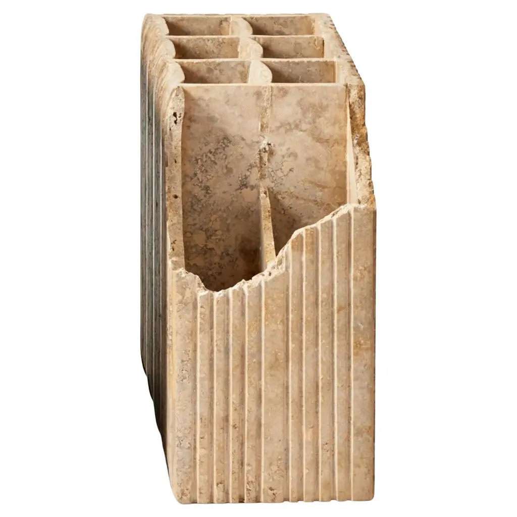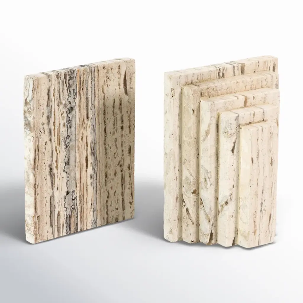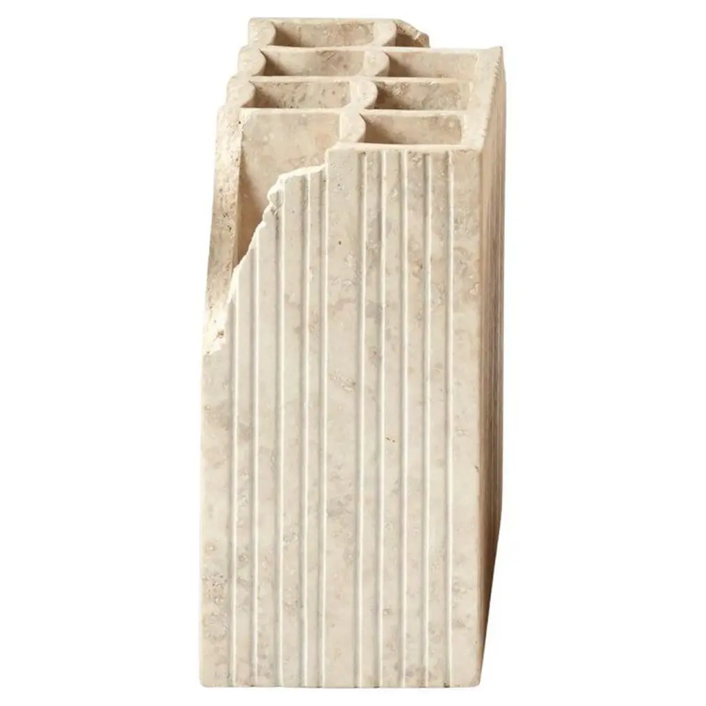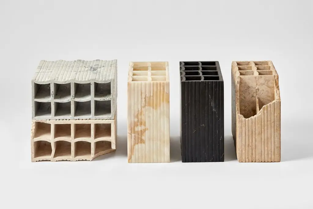 Ceiling brick by RF StudioDimensions: W 15 D 30 x H 30 cm Materials: Andes StonesAlso available: other finishes available.The brick is a generic constructive element that constitutes part of the urban imaginary. In Peru, moreover, its image is linked to the phenomenon of migration from the countryside to the capital that began in the 1940s and involved new constructions of collective space on the outskirts of Lima, new urban centres in the different regions of the country and new forms of self-construction of housing. Based on the concept of constructive material, Bricks suggests the question of whether there is continuity between the materiality of the natural territory and the materiality of the contemporary urban habitat; and whether it is possible to recover the relationship with the diversity and particularity of each of the ecosystems we inhabit. The pieces pose the fragile balance between the processes of material transformation within nature and the systems of production, extraction and construction of our society.ESTUDIO RF is located in Lima, Peru. We are dedicated to the research of the contemporary habitat and natural environments in the Peruvian context, seeking to dissolve established limits between them. Our multidisciplinary team is conformed by visual artists, architects, traditional artisans, performers, designers, actors and writers. We regard art as an open field that functions like a hub that establishes new relationships between nature and human activity.We aim to rebuild the continuity between natural landscape, art and architecture by reconnecting the current urban condition with the bodily experience of being free in the wilderness. We acknowledge fluidity and non-definition of the landscape; a wild and dynamic setting were everything coexists without visible hierarchy or law.In opposition, the urban landscape is defined by social codification, segregation and segmentation of space. The values of the global market and technological modernity are creating distance and alienation in everyday life.Faced with this, we return to the heterogeneous, through natural ecosystems, to raw materials, to organic processes and to traditional local craft; we bring to light its real value, and reestablish contact between these elements and the body.We consider the human being and society not as nucleus, but as part of an ecosystem; a big community of living organisms. In a society governed by images, noise, artificial light and industrial materials, we find solace and intimacy in the darkness of the wild environment that meet us through the opaque and warm qualities of the natural shadows surrounding us.We create a balance between visible and palpable, between sound and silence, between industrial or digital production and natural or artisanal materials. Our goal, beyond ideologies or artistic intent and manifestos, is to reimagine the intimate acts of daily life as a potential means for future transformation.