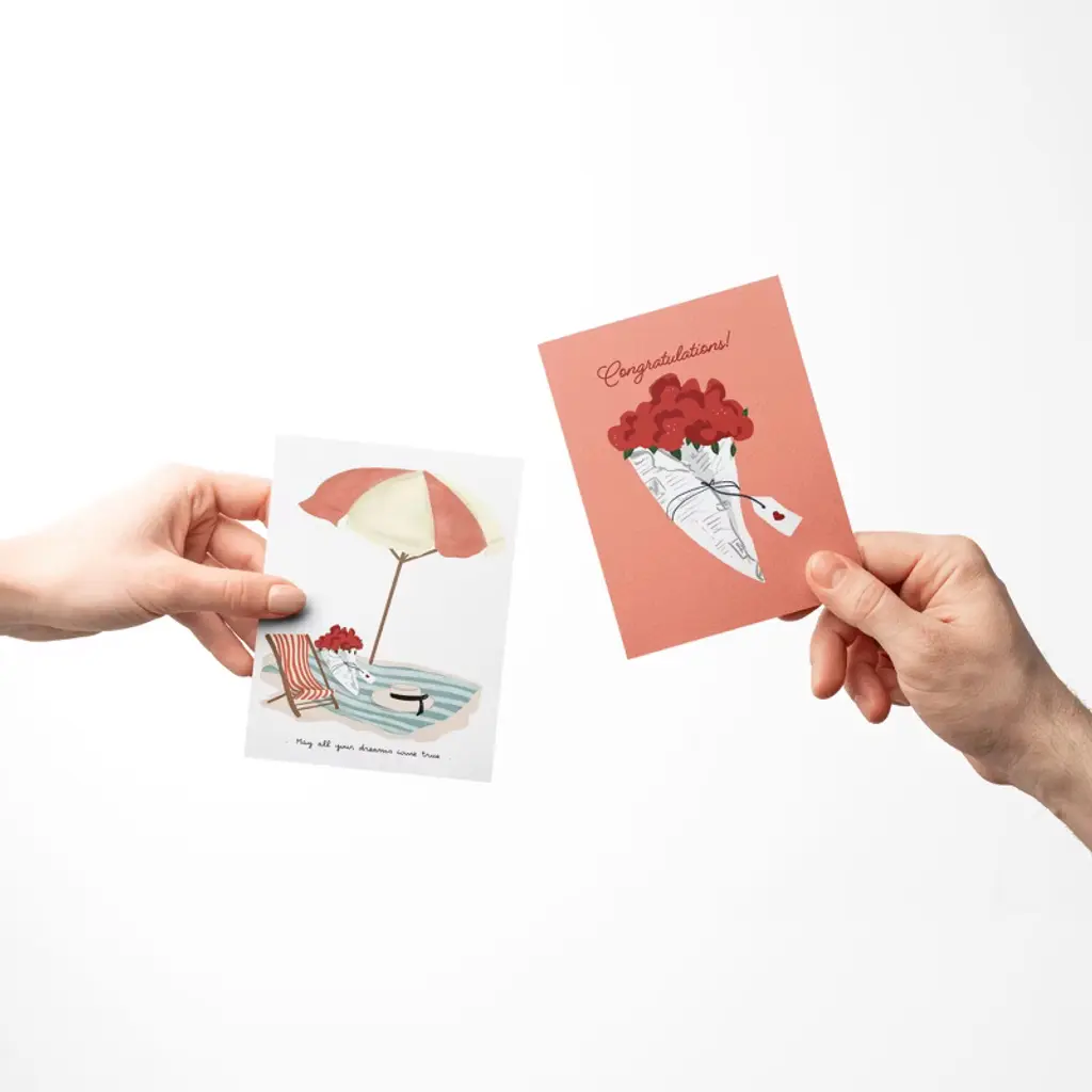 Celebration/graduation Assorted Greeting Card Pack (3ct) "Celebrate, Flowers, Beach" By Ramus & Co