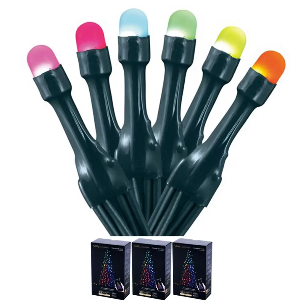 You don't have to decide what color to light up your home with Halloween spirit this season, now you have the best of all worlds with this set of 100 multicolored T5 LED lights. String these orange, purple and green lights above a doorway, window, or mantel or take them outdoors and hang them on the trees or bushes.