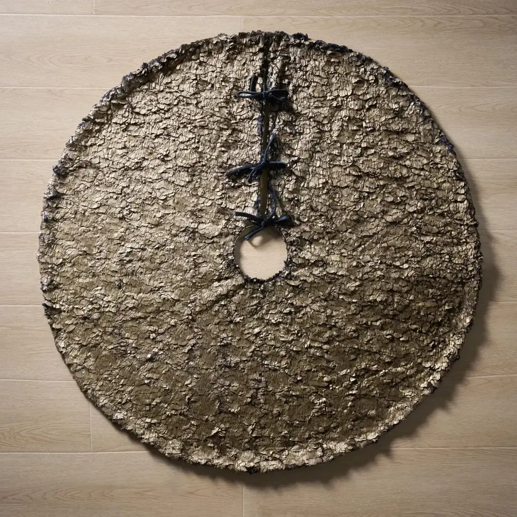 Dress your tree with high drama and gleaming texture. The Celeste Tree Skirt in bronze brings modern metallic beauty to your space with its luxuriously soft finish and sculptural appeal.ZG Exclusive