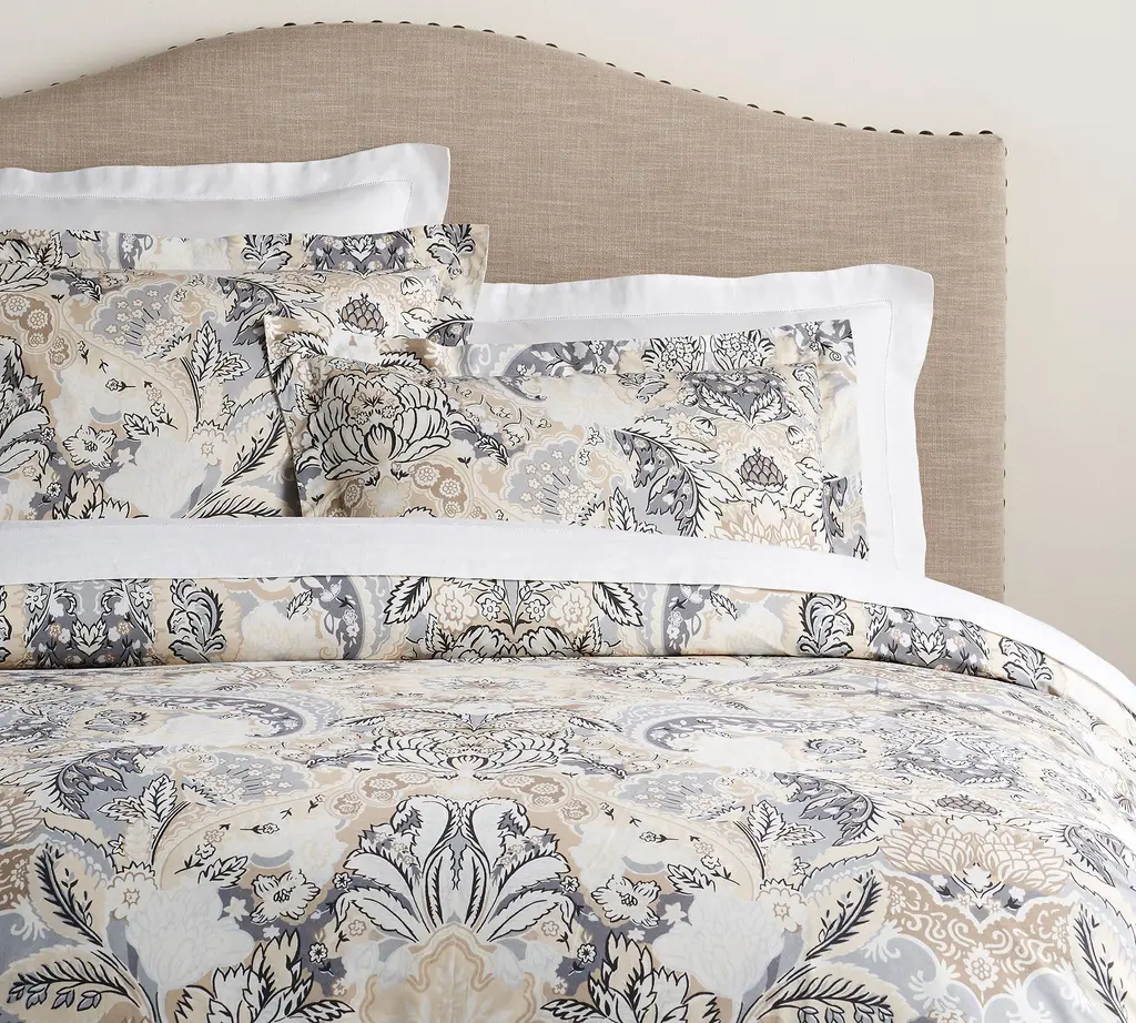 A mix of warm and cool neutrals, the Celeste Shams are a welcome update to traditional damask. Printed on organic cotton, this durable, breathable, eco-minded bedding lets you make a better bed in more ways than one.