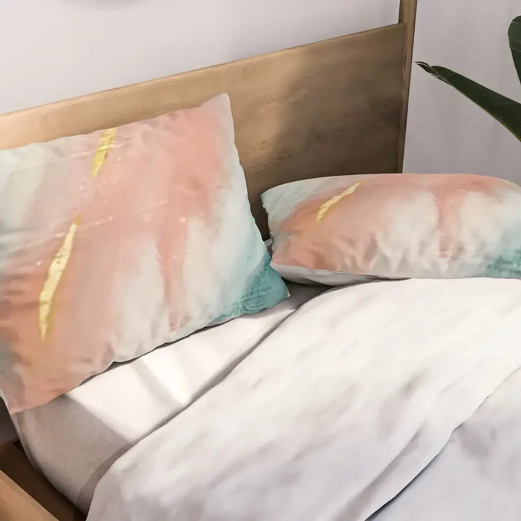 Celestial [3]: A Minimal Abstract Mixed-Media Piece In Pink, Blue, And Gold By Alyssa Hamilton Art Pillow Sham