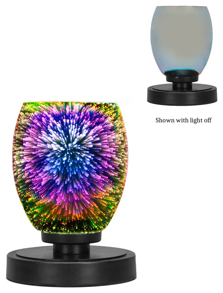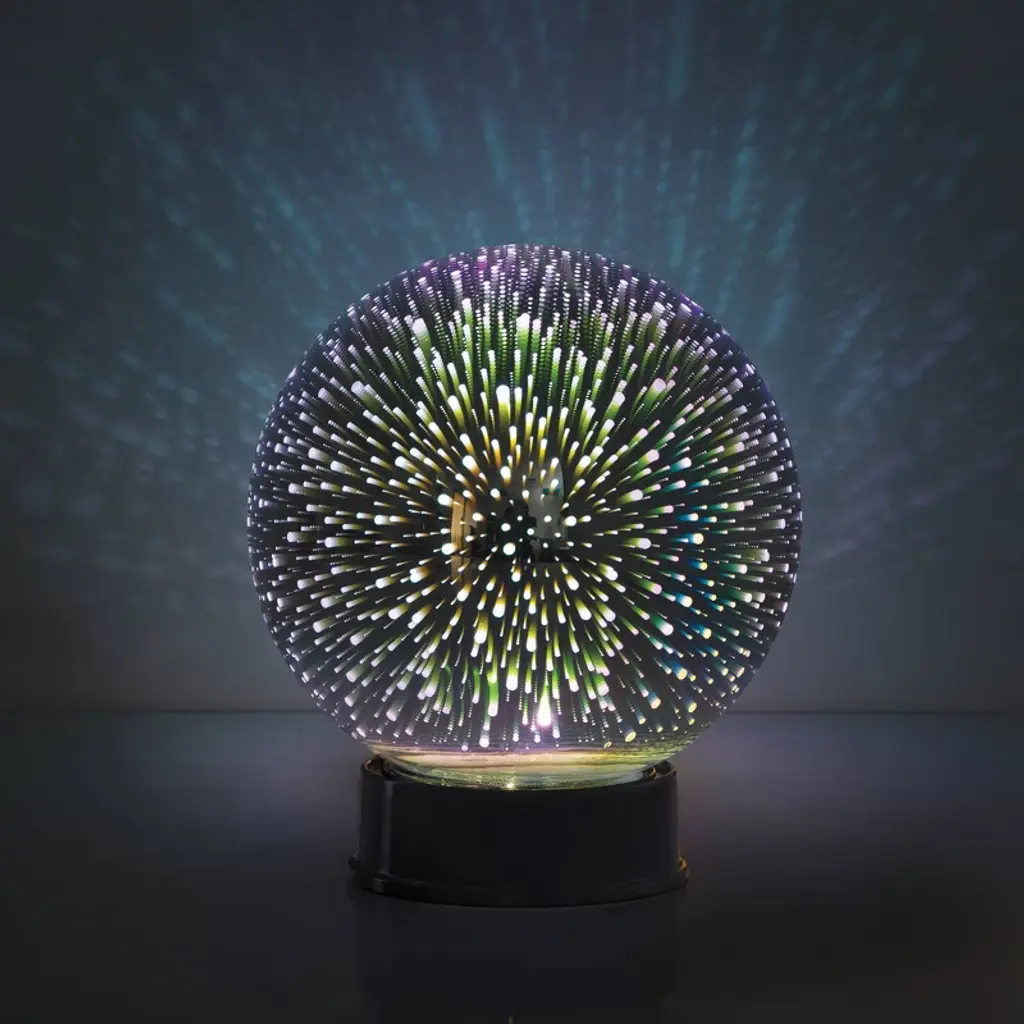Bring a subtle burst of light into your room with this Celestial Globe Lamp. The multi-color glass with black base creates a beautiful 3D burst effect for any space. Place onto any desk, nightstand or bookcase. This lamp is USB powered to bring the wonders of the cosmos right to your room.