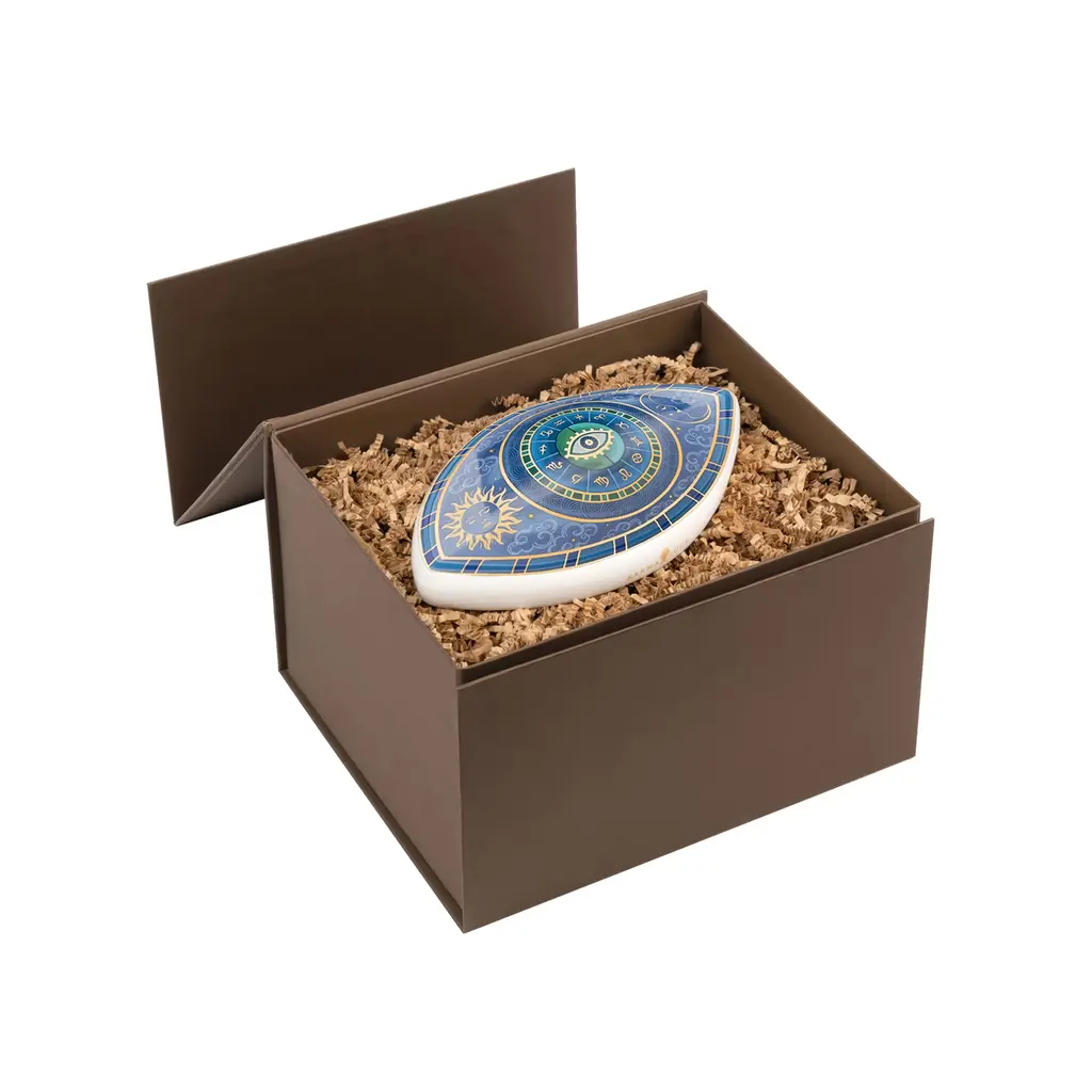 When you touch the celestial in your heart, you will realize that the beauty of your soul is so pure, vast, and devastating that you have no option but to merge with it. Make our "Celestial Unity - Evil Eye Ceramic Wall Blessing" your companion on your spiritual path to enlightenment. With the Evil Eye symbolism, your home will be protected from all directions and you will feel an energetic aura around you. The Sun symbolizes firmness, strength, and power while the Moon represents calmness, beauty, and nurturing. Place this meaningful wall blessing in your reading corner or bedroom and start feeling the solace and good vibes it brings into your life.