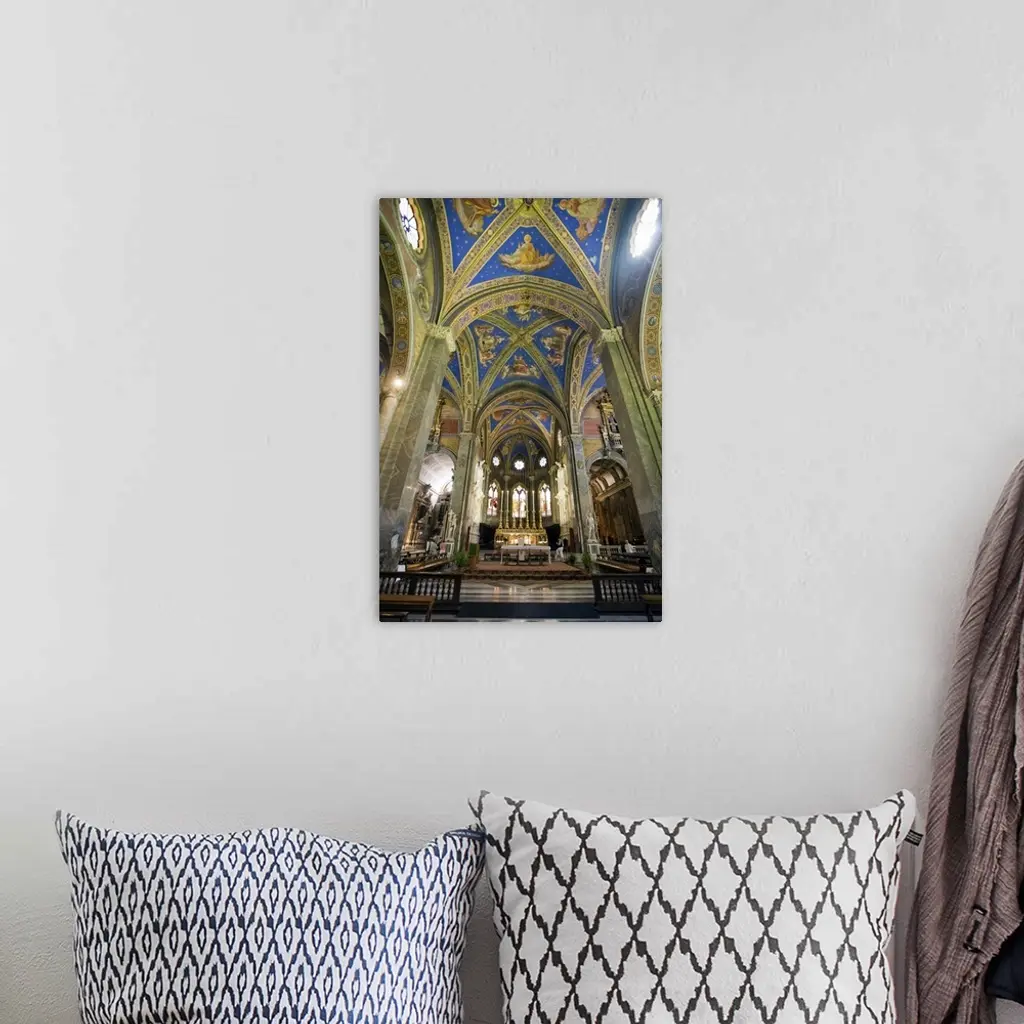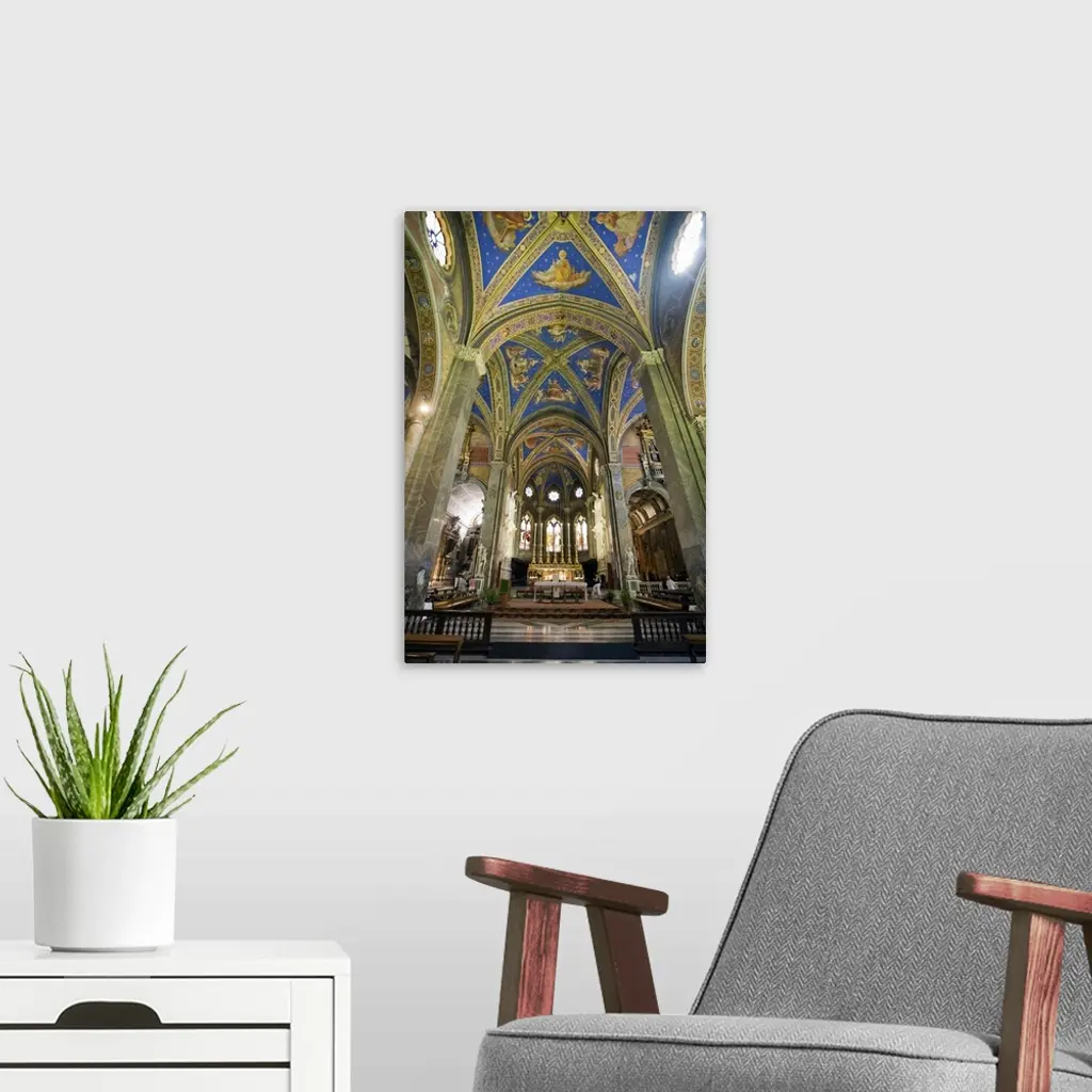 Celing and main nave of Santa Maria Sopra Minerva Basilica, Rome wall art for home and office decor. Discover canvas art prints, photos, mural, big canvas art and framed wall art in GreatBigCanvas.com's varied collections.
