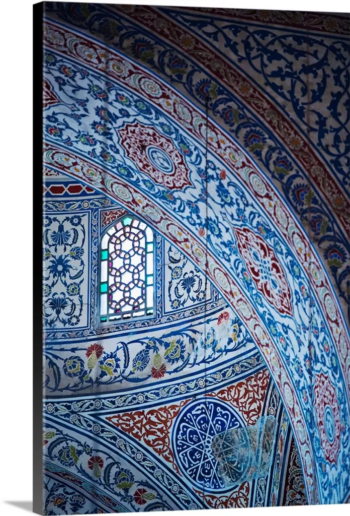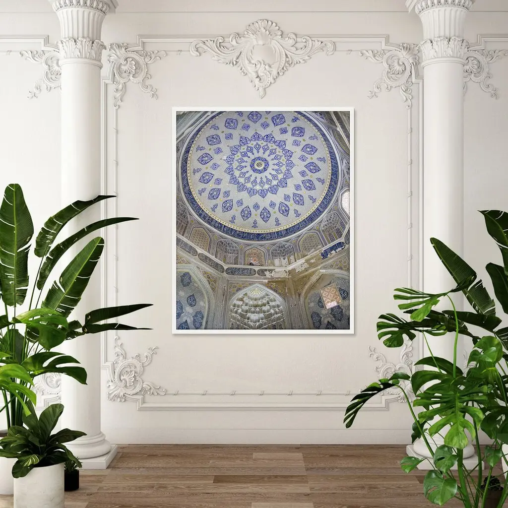 Central Gathering allows the viewer to witness a portion of the exquisite ceiling of the interior of the Shah-i-Zinda Mosque in Samarkand, Uzbekistan.