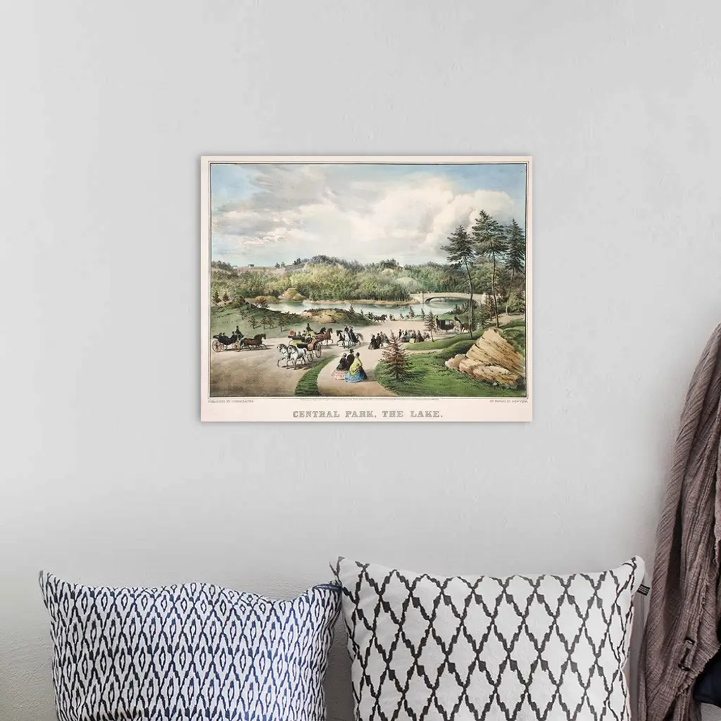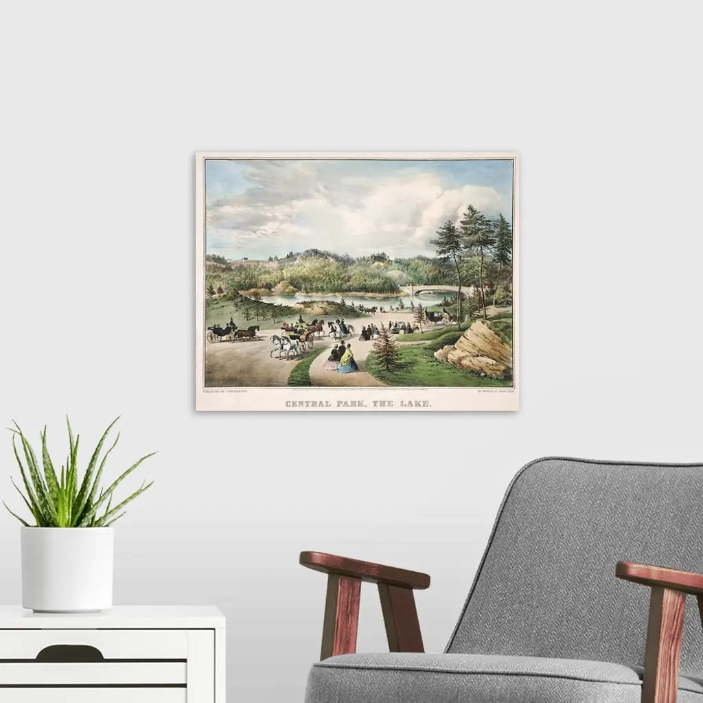 Central Park - The Lake, 1862 (originally hand-coloured lithograph) by Currier, N. (1813-88) and Ives, J.M. (1824-95)