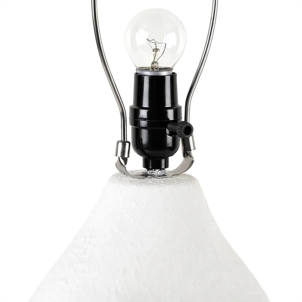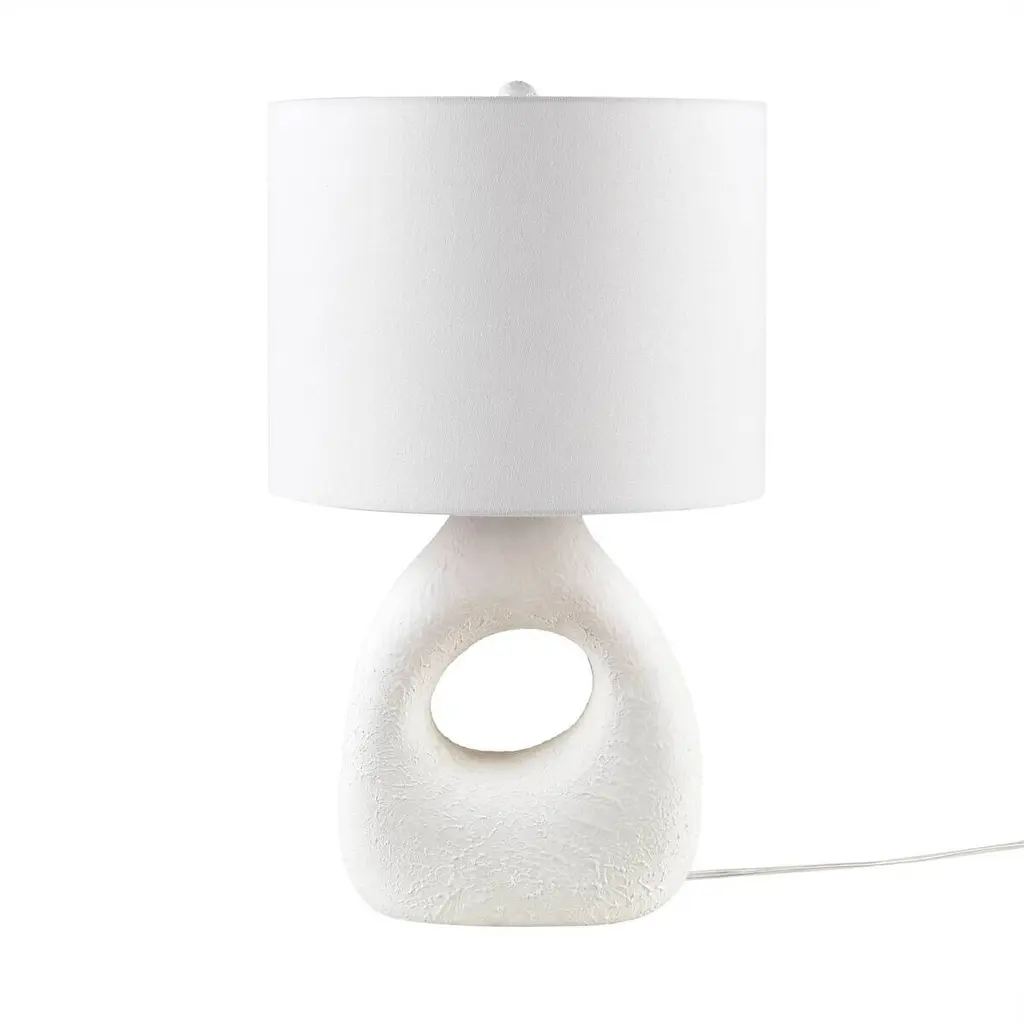 🏠 Introducing the Ceramic Table Lamp – A Stylish Addition to Your Home DecorAdd a touch of elegance and warmth to your living space with our Ceramic Table Lamp. This casual yet contemporary lamp features an organically shaped silhouette that blends seamlessly with any decor style. The textured matte-white ceramic base provides a sturdy foundation, while the white drum shade with matching finial offers a cohesive look. Whether you're looking to illuminate your reading corner or add ambient lighting to your living room, this lamp is the perfect choice. ✨Specifications 📏Dimensions:Overall: Diameter 13" x Height 22"Body: Width 10" x Depth 5.5" x Height 11.75"Shade: Diameter 13" x Height 10"Socket: Diameter 1.25" x Height 2"Cord Length: 60"Material Composition:Overall: 80% Ceramic, 20% PolyesterBody: 100% Ceramic for durability and beautyShade Fabric: 100% Polyester for a soft, diffused lightFeatures 🌟🔸 Organically Shaped Silhouette: Adds a natural, flowing elegance to your home decor.🔸 Textured Matte-White Ceramic Base: Provides a sturdy, stylish foundation for the lamp.🔸 White Drum Shade: Matches the ceramic base and finial for a cohesive look.🔸 On/Off Rotary Switch: Simple and easy to use for quick lighting adjustments.🔸 Plug-In Design: With a 60-inch clear colored cord, this lamp is easy to install and use.🔸 LED Light Bulb Included: One 9W LED bulb is provided, saving you energy and money while providing bright, clear lighting.🔸 Polarized Plug: Ensures safe and secure operation. Please note that this lamp is not dimmable.🔸 Spot Clean Only: Protect the beauty of your lamp by spot cleaning only; avoid soaking or immersing in water.Product Use Feedback & After-Sales Guide💡 Product Use Feedback: We value your feedback and are always striving to improve our products. If you have any suggestions or comments, please feel free to share them with us.🔧 After-Sales Guide: If you encounter any issues with your Ceramic Table Lamp, please don't hesitate to reach out to us. Simply send a photo and a detailed description of the problem to our customer service email, and we will respond promptly to assist you. Your satisfaction is our top priority, and we are committed to ensuring that every customer has a positive experience. 😊Enjoy the warmth and elegance of the Ceramic Table Lamp in your home! 🏠✨
