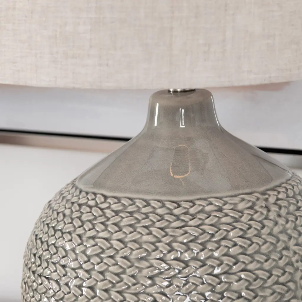 Ceramic Woven Texture Table Lamp With Linen Shade