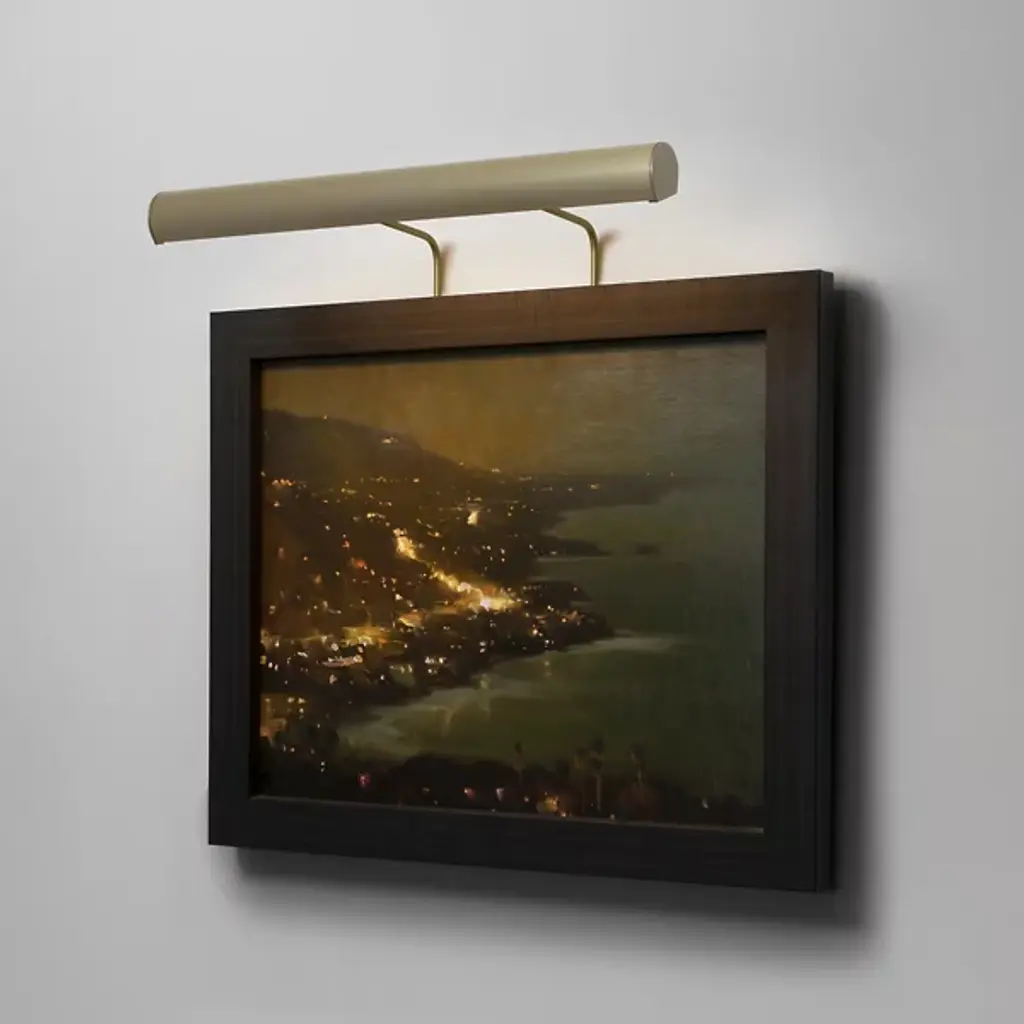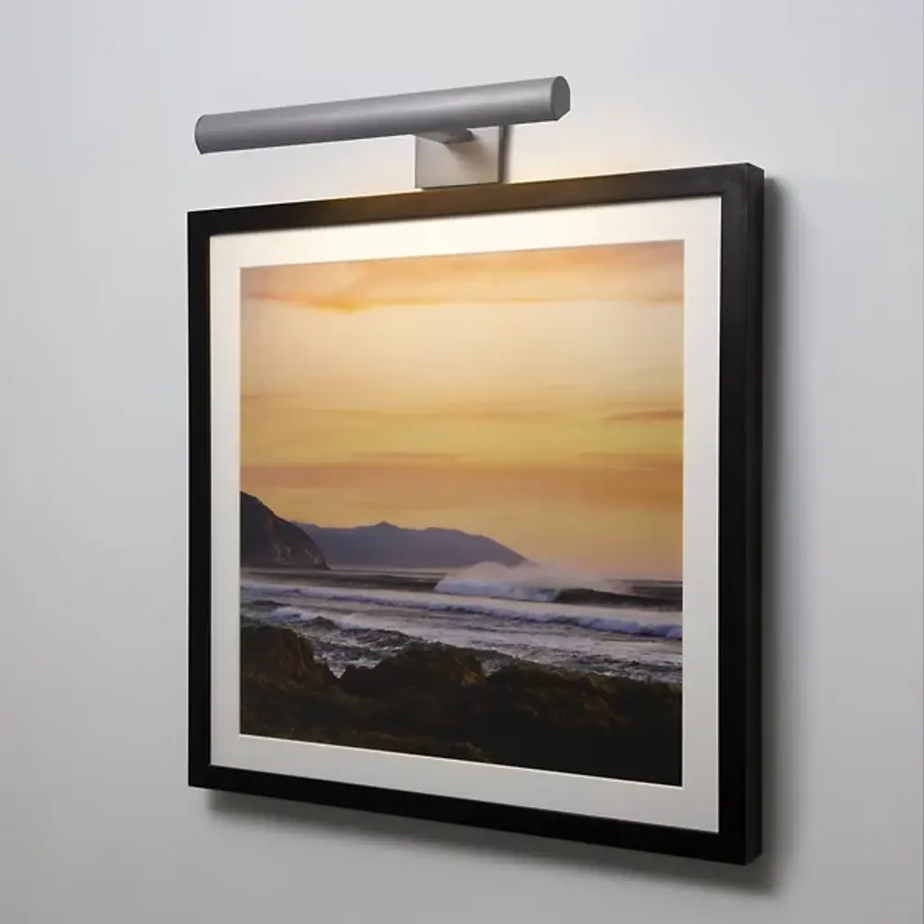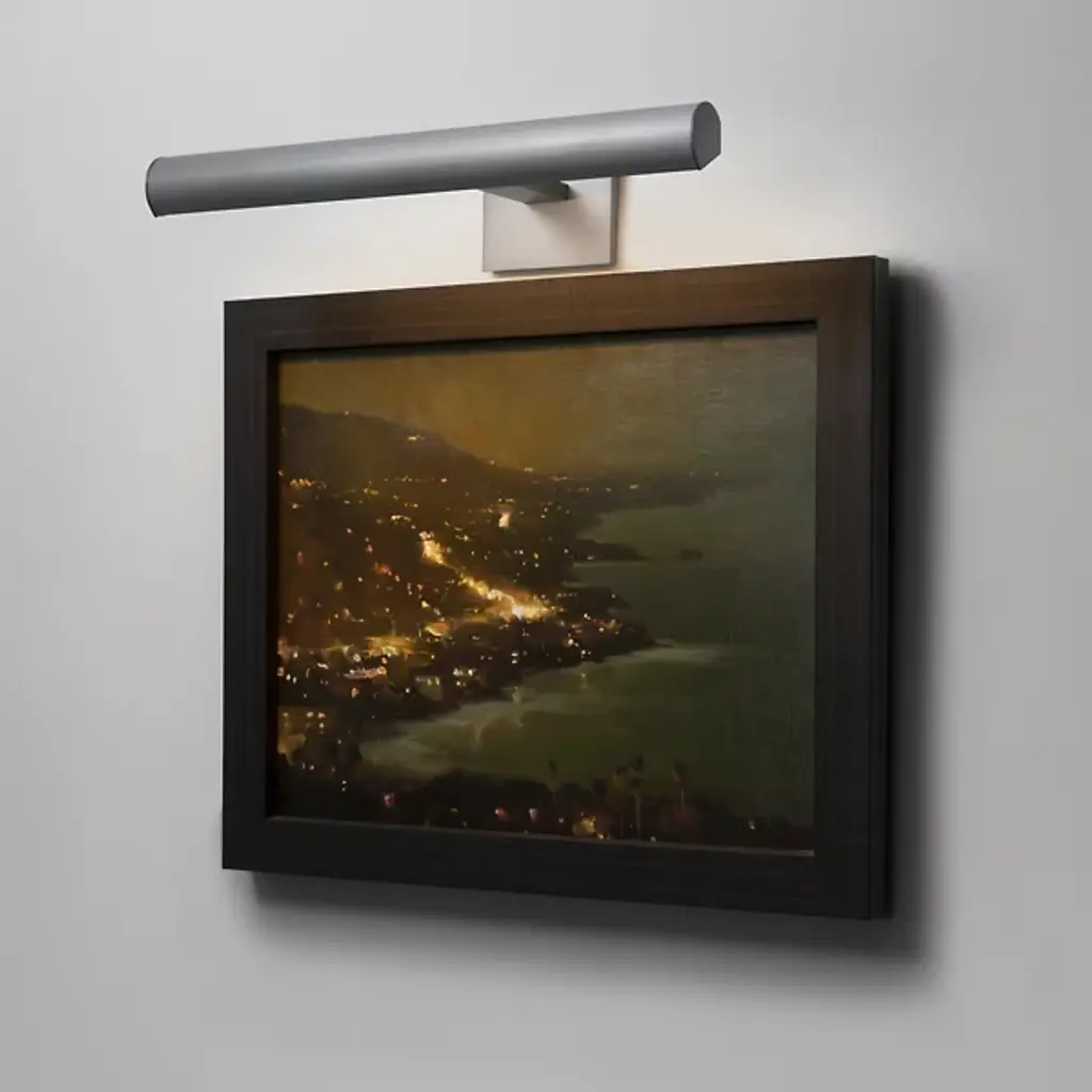 This energy-efficient Cerno Round Profile LED Picture Art Light is expertly handmade in the USA and embodies a subtle, contemporary, gallery-like style. Constructed from 100% high-quality aluminum, it is durable and features a sleek finish along the rounded bar and on the mounting plate. This curved art spotlight bar provides exceptional brightness without sacrificing ambiance. Experience superior illumination with this USA-made, all-aluminum, eco-friendly LED light as your gallery wall comes to life.