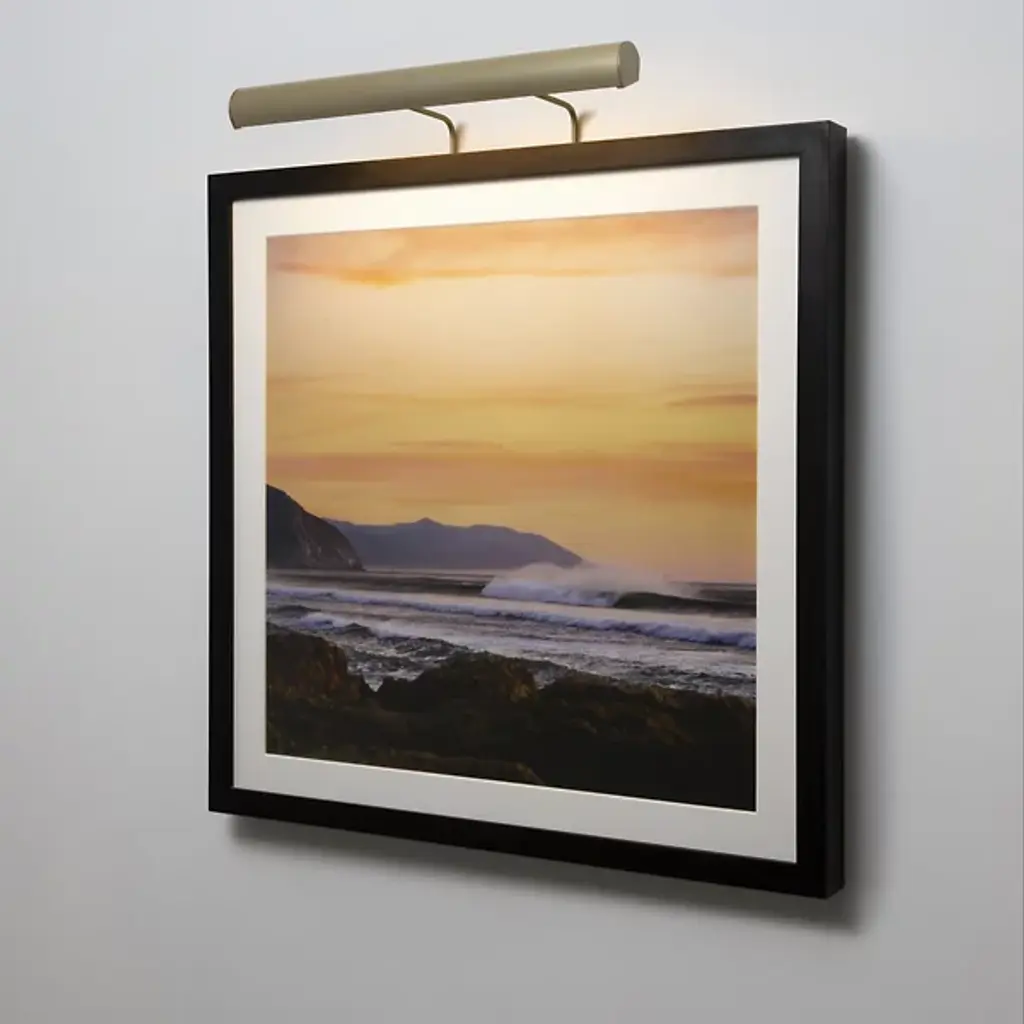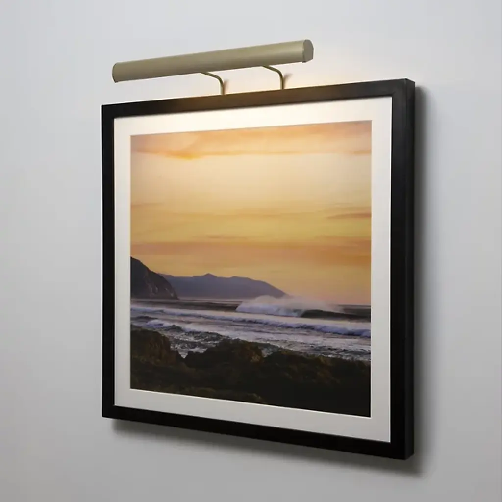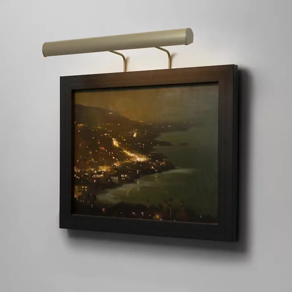 This energy-efficient Cerno Round Profile LED Picture Art Light is expertly handmade in the USA and embodies a subtle, contemporary, gallery-like style. Constructed from 100% high-quality aluminum, it is durable and features a sleek finish along the rounded bar and on the mounting plate. This curved art spotlight bar provides exceptional brightness without sacrificing ambiance. Experience superior illumination with this USA-made, all-aluminum, eco-friendly LED light as your gallery wall comes to life.