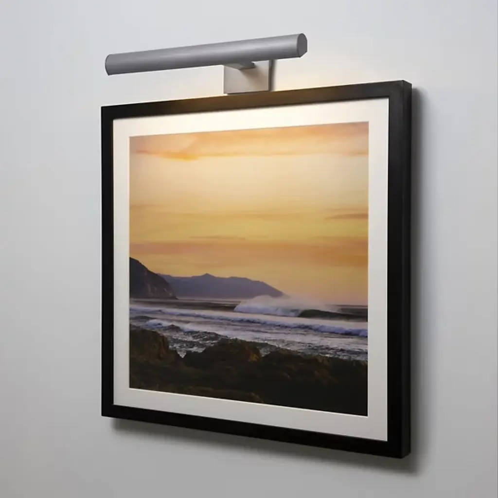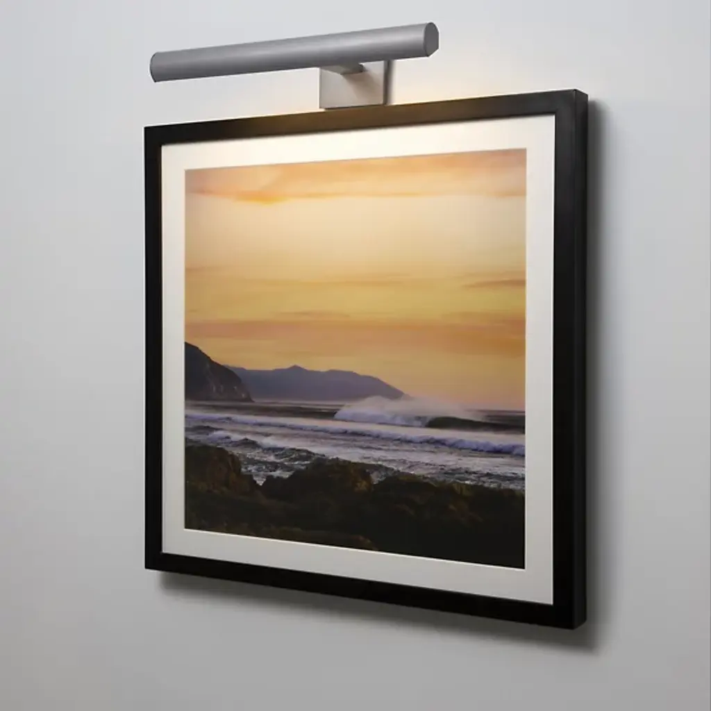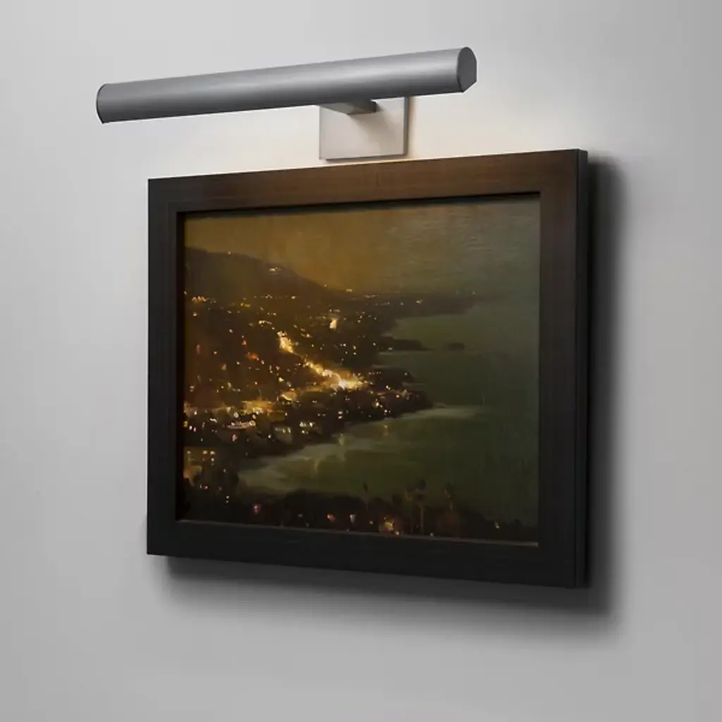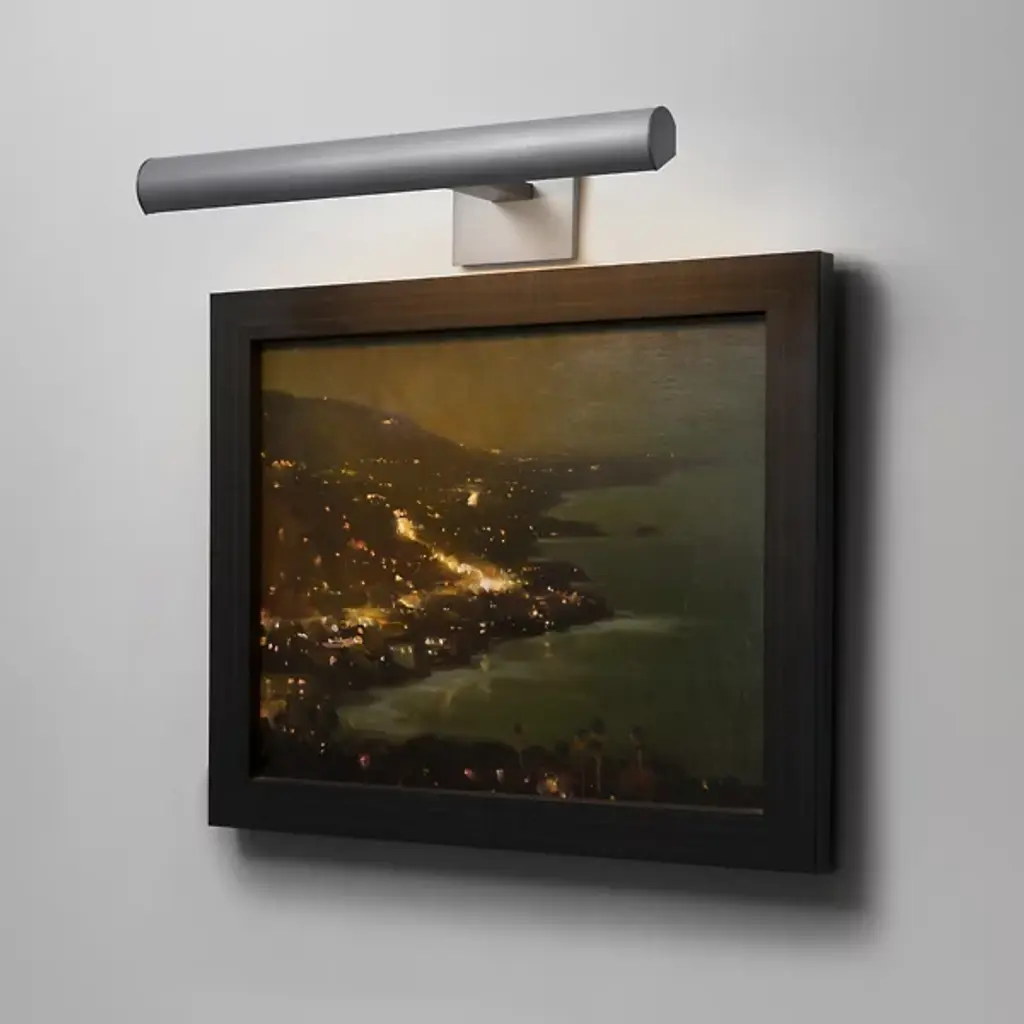This energy-efficient Cerno Round Profile LED Picture Art Light is expertly handmade in the USA and embodies a subtle, contemporary, gallery-like style. Constructed from 100% high-quality aluminum, it is durable and features a sleek finish along the rounded bar and on the mounting plate. This curved art spotlight bar provides exceptional brightness without sacrificing ambiance. Experience superior illumination with this USA-made, all-aluminum, eco-friendly LED light as your gallery wall comes to life.