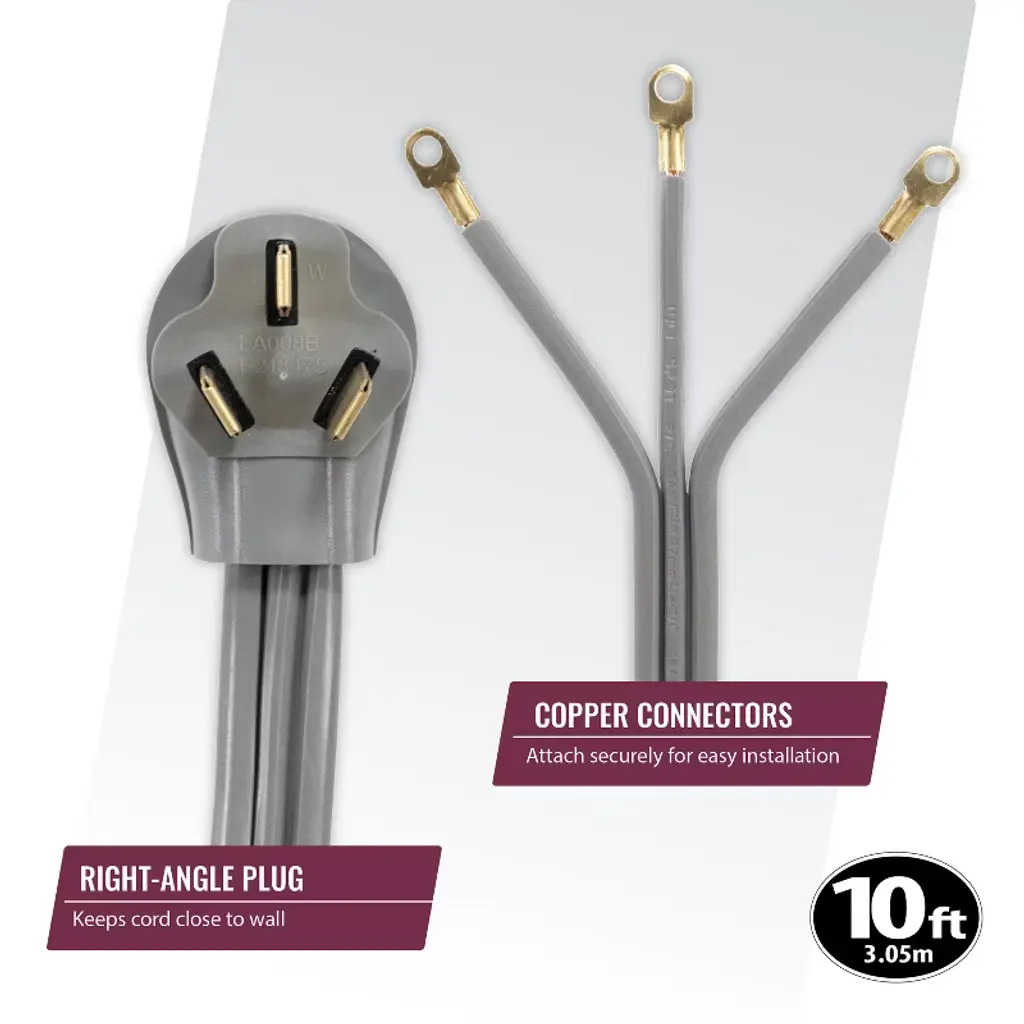 Certified Appliance Accessories® 3-wire Eyelet 50-amp Range Cord, 10ft In Gray, Size: 10 Ft.
