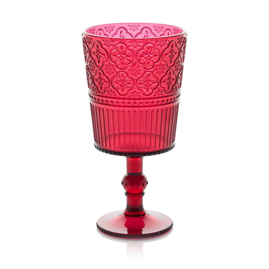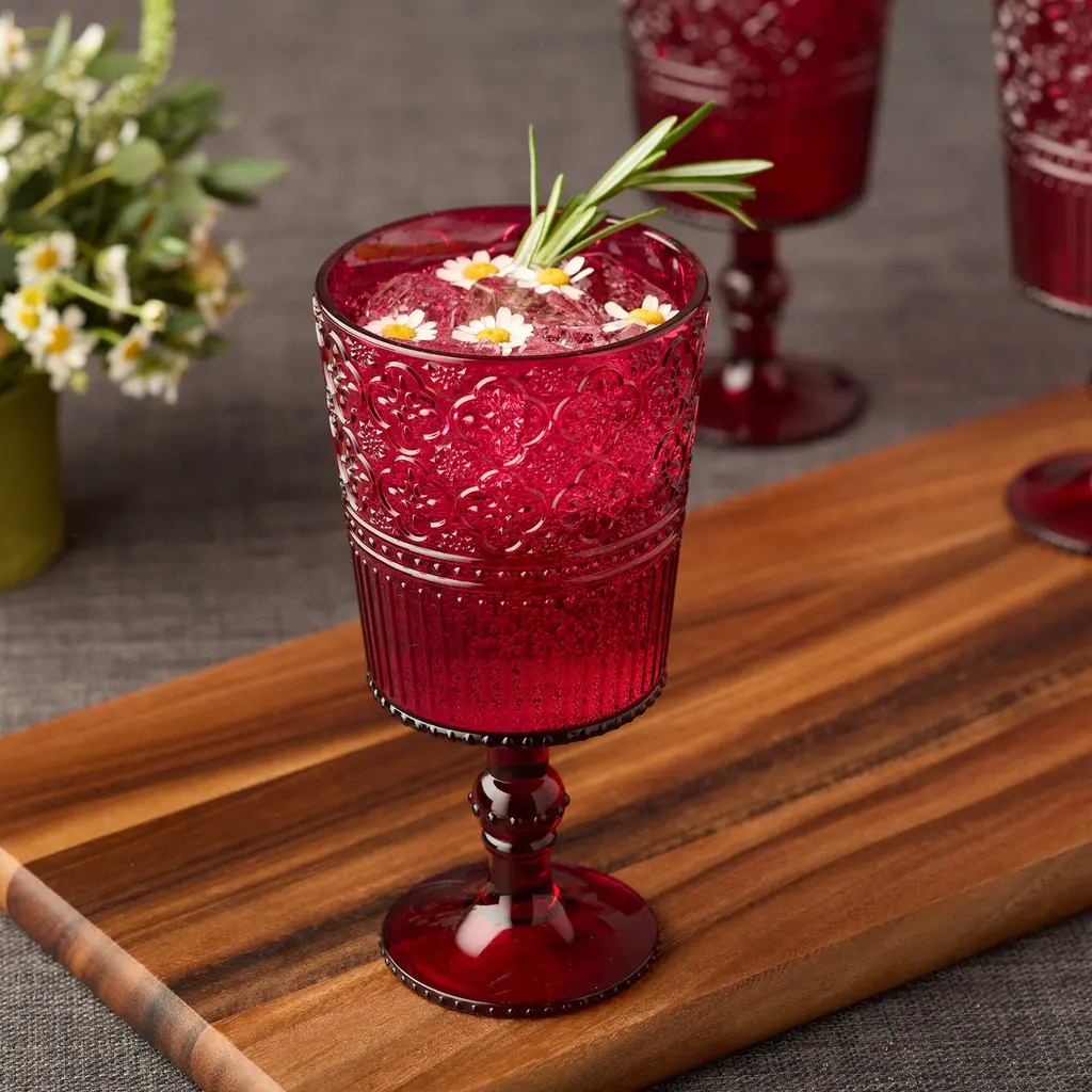 Certified International Victoria Set Of 6 Acrylic All Purpose Goblet 14 Oz - 3.50"w X 3.50"d X 7.00"h - Ruby