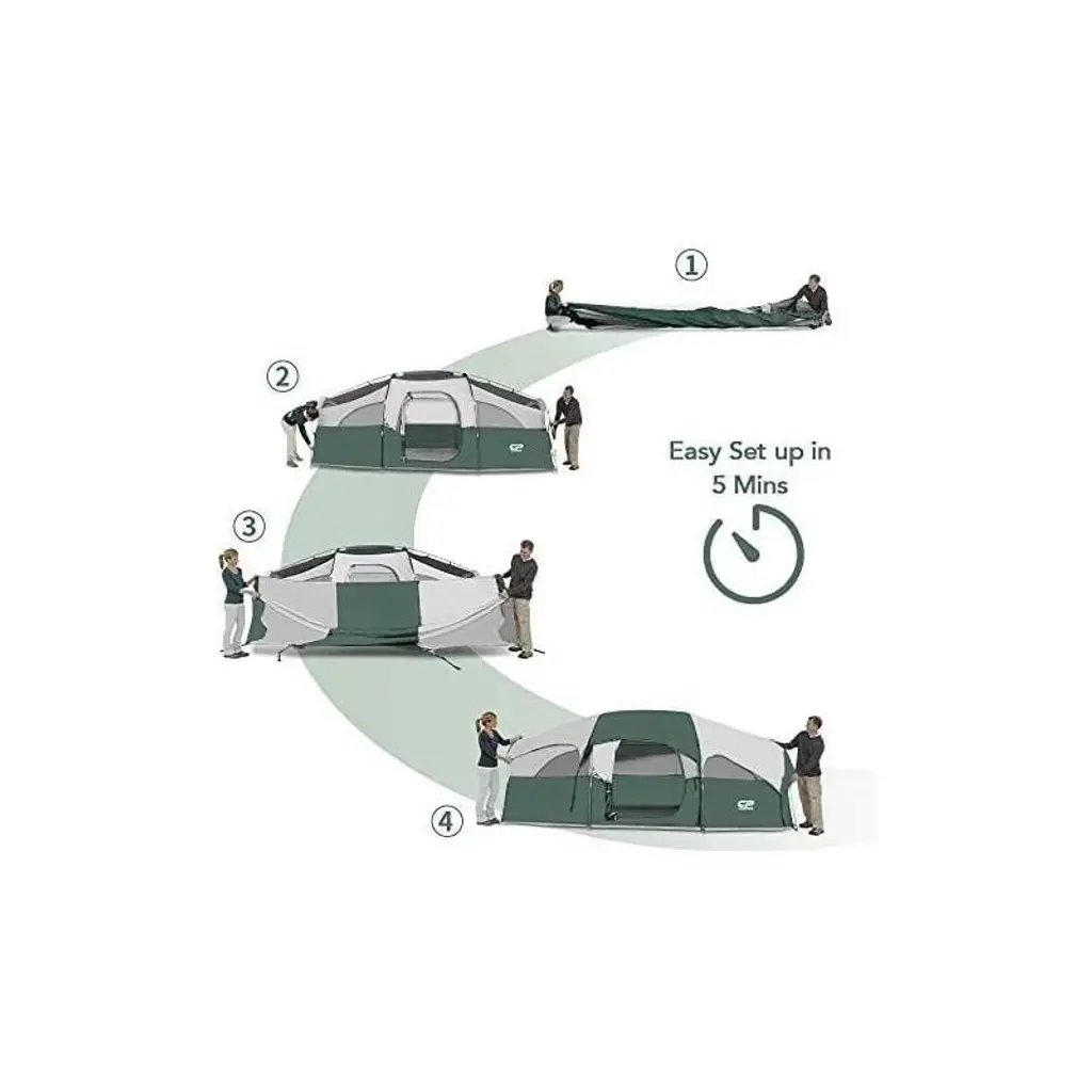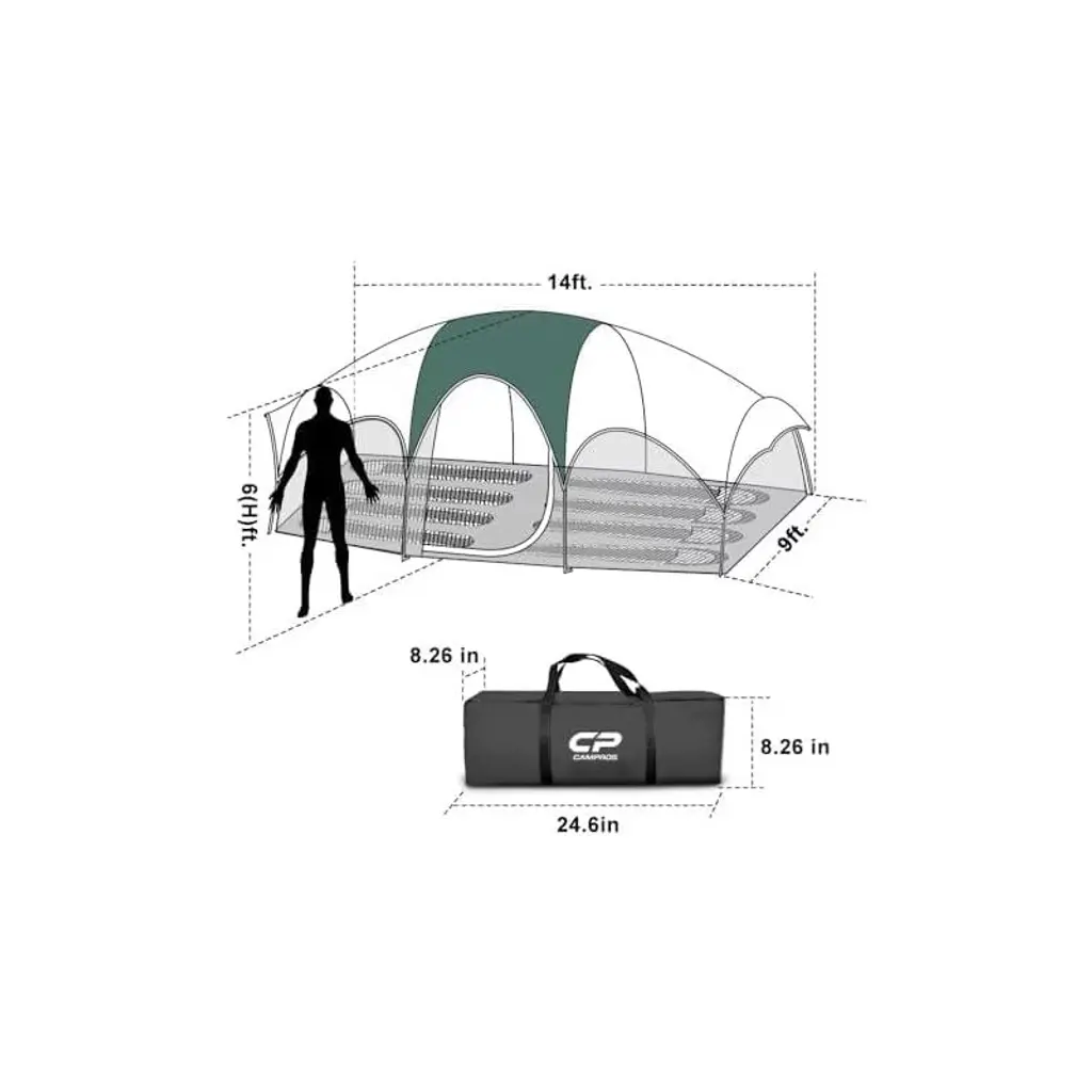 Cesicia 14 Ft Dark Green 8 Person Camping Tents With 5 Large Mesh Windows