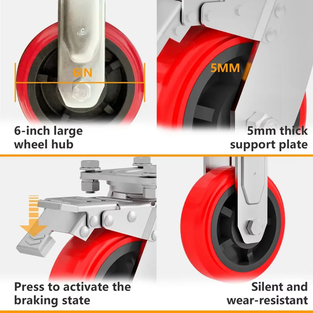 Cesicia 36 X 24" Steel Panel Truck, Lumber Cart, Platform Truck With 6" Swivel Brake Casters, 3 Side Handrails, Capacity 2000 Lbs