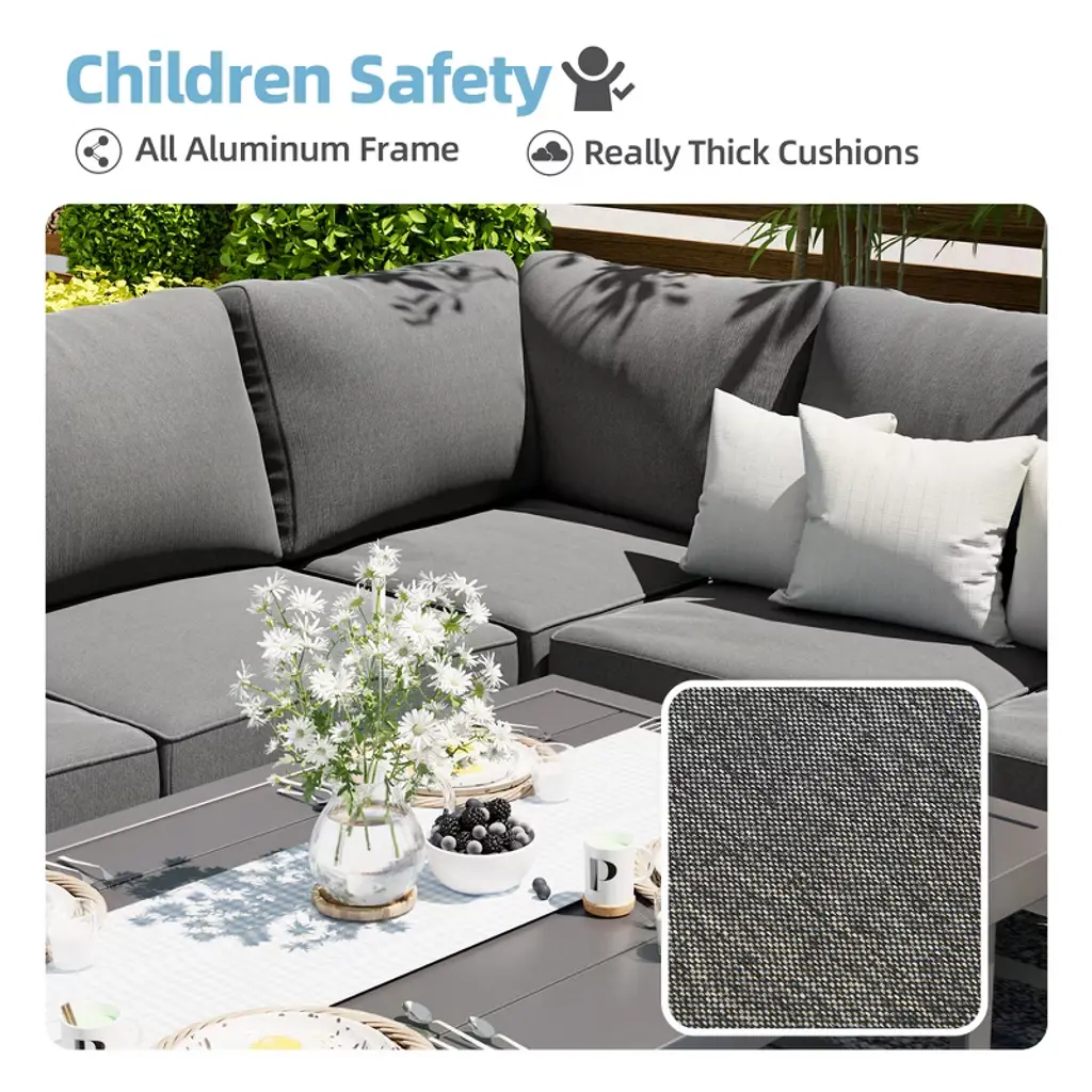 Cesicia 7-piece Black Atio Sofa Set With Adjustable Height Coffee Table For Backyard, Porch & Poolside