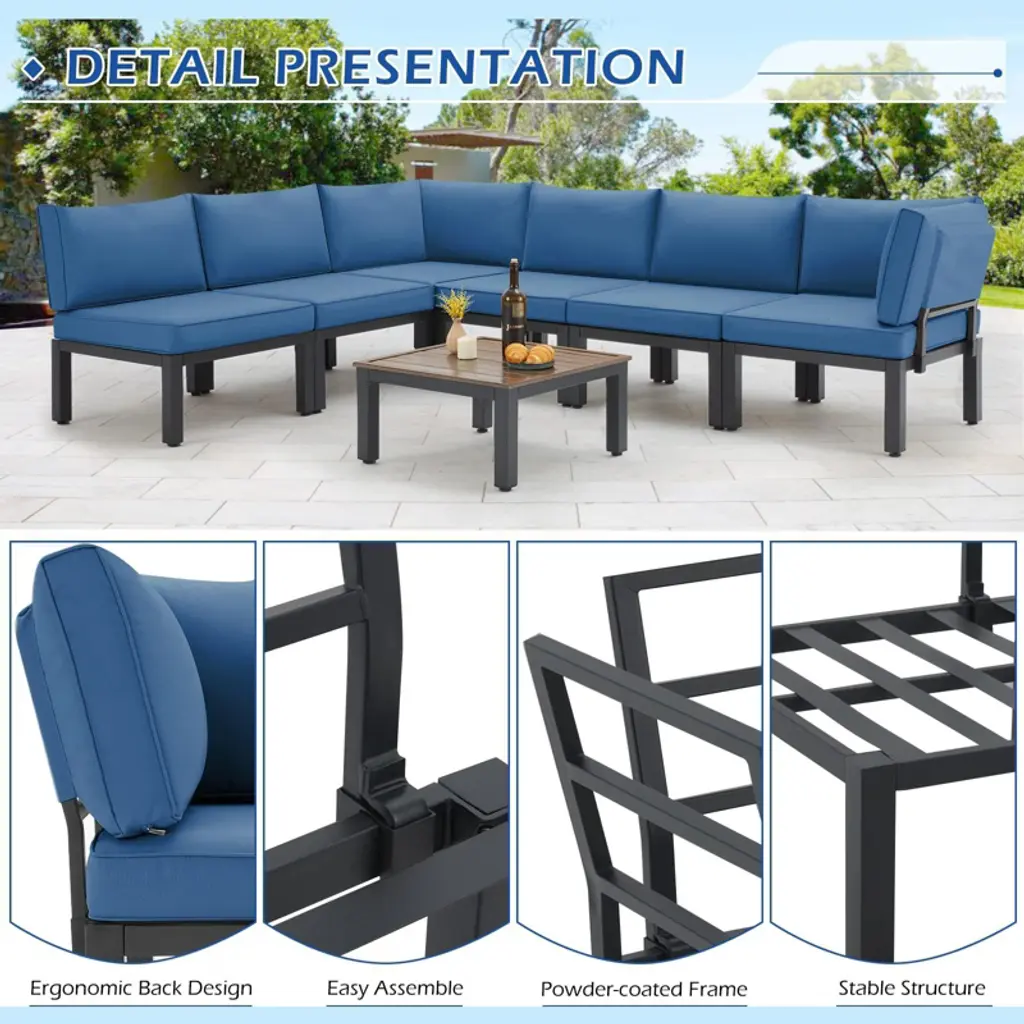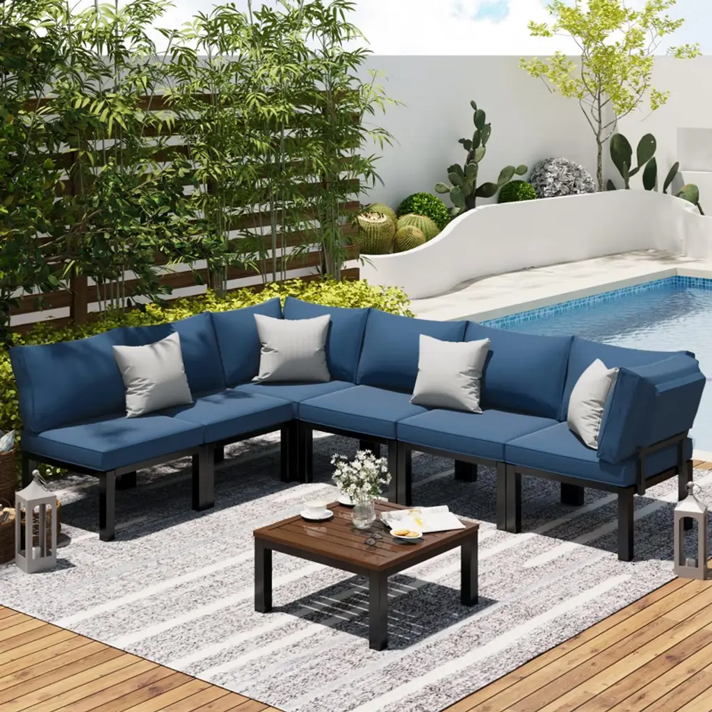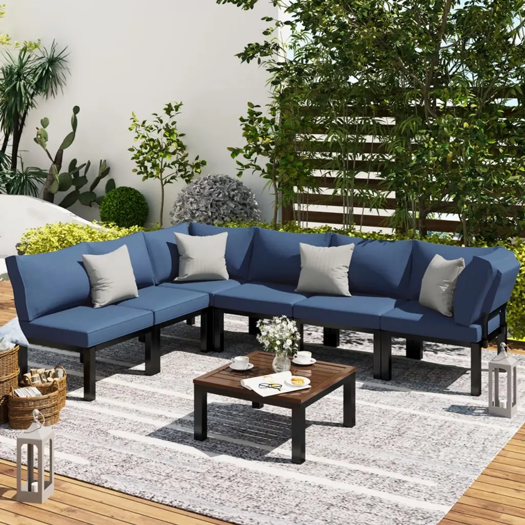 Cesicia 7-piece Blue Patio Sofa Set With Coffee Table For Backyard, Porch & Poolside