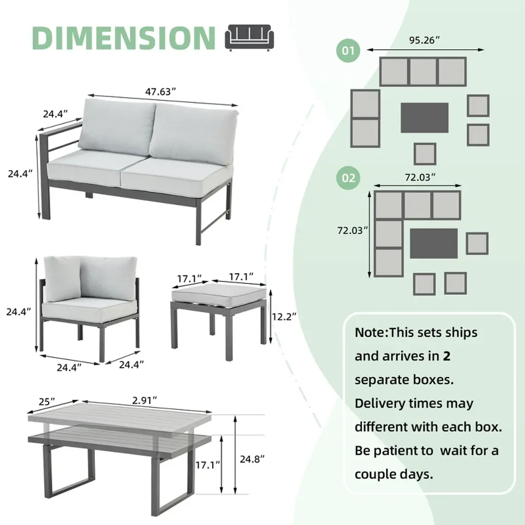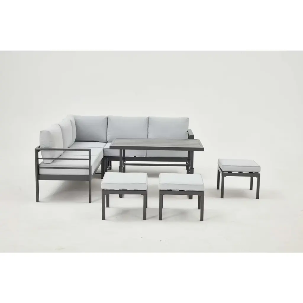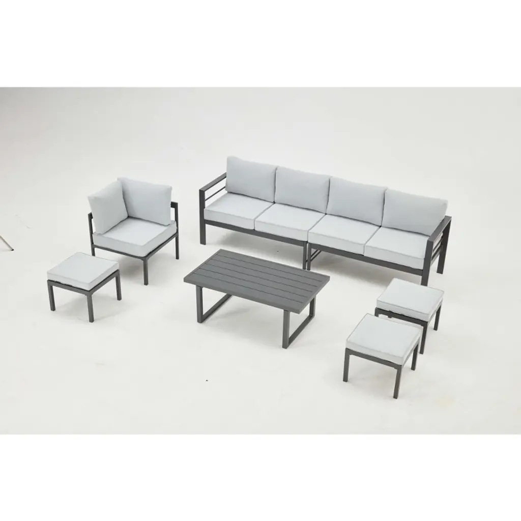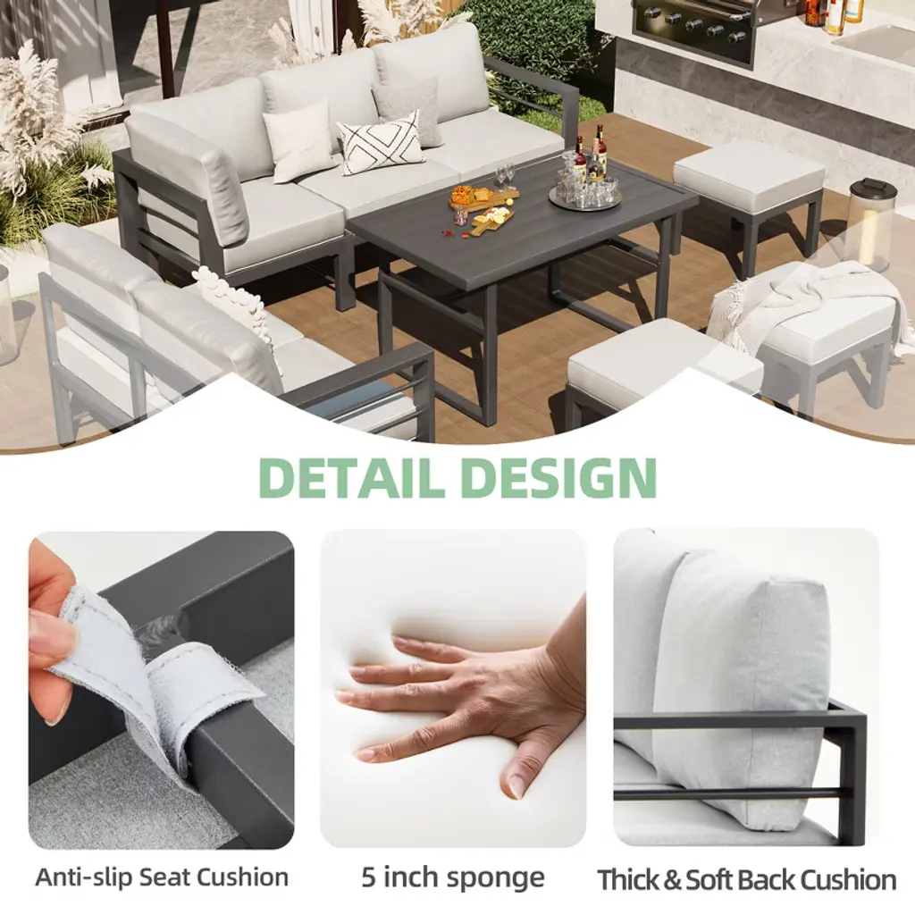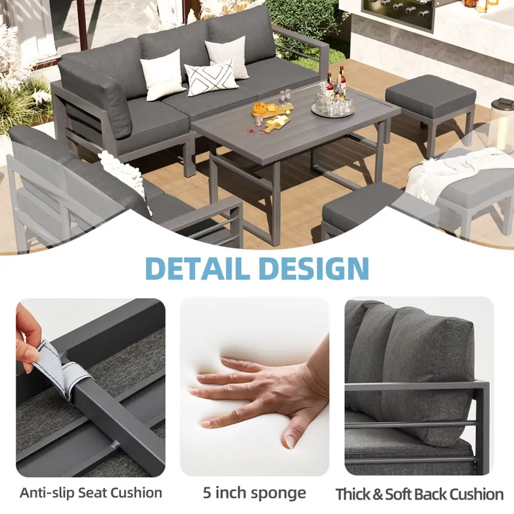 Cesicia 7-piece Gray Patio Sofa Set With Adjustable Height Coffee Table For Backyard, Porch & Poolside