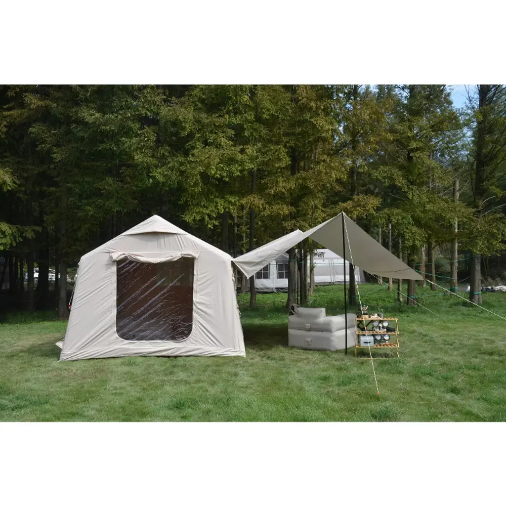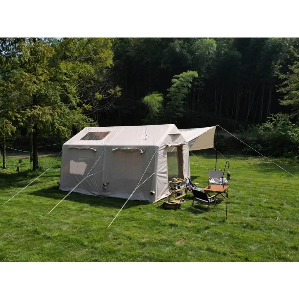 Cesicia 9.8 X13ft Beige Inflatable Camping Tents With Hand Pump & Canopy , Waterproof And Windproof Blow Up Tent, Easy Setup