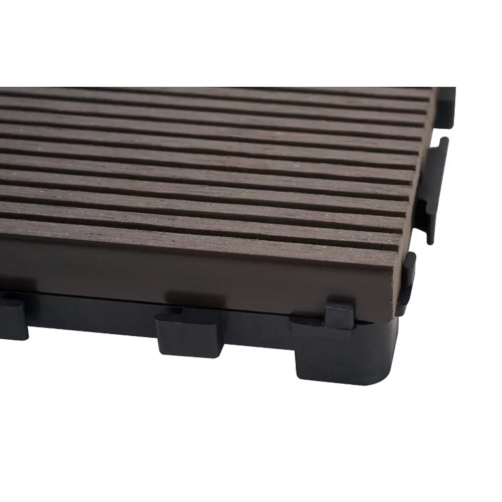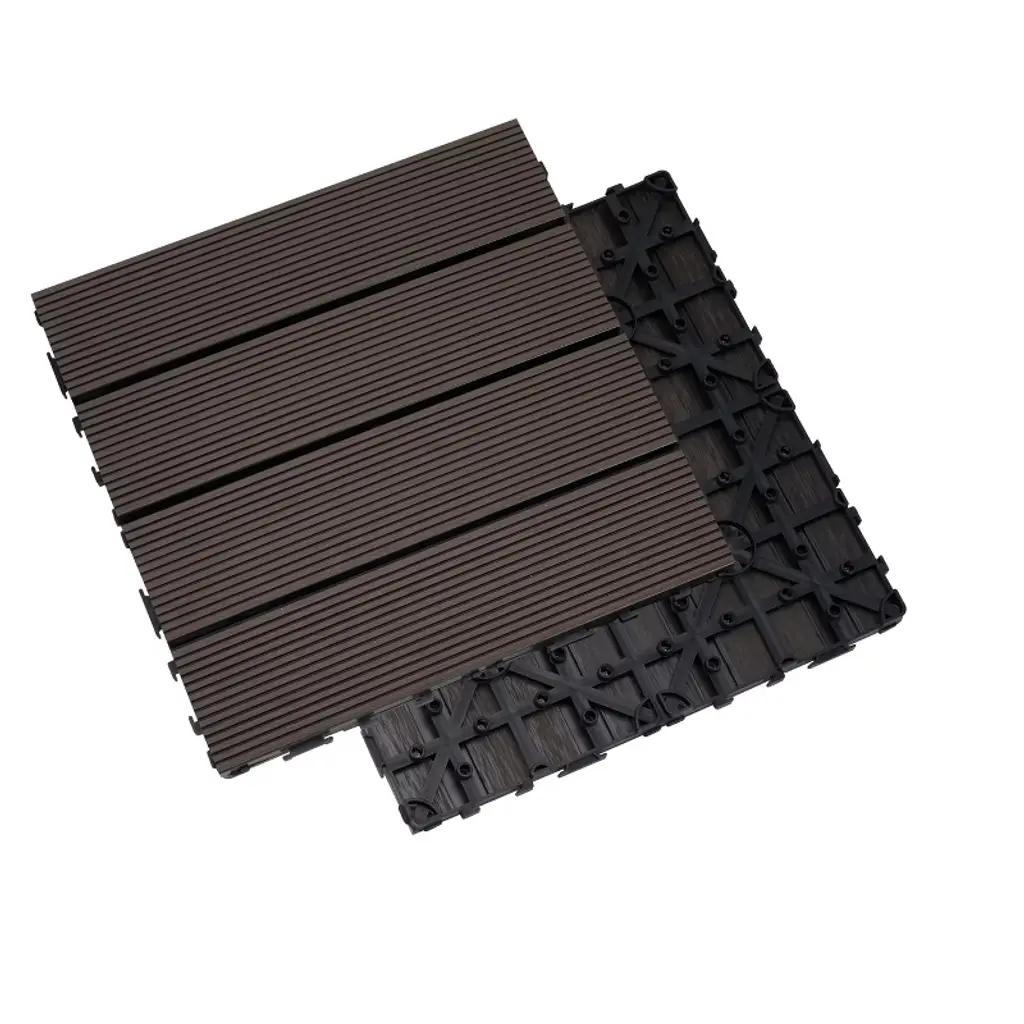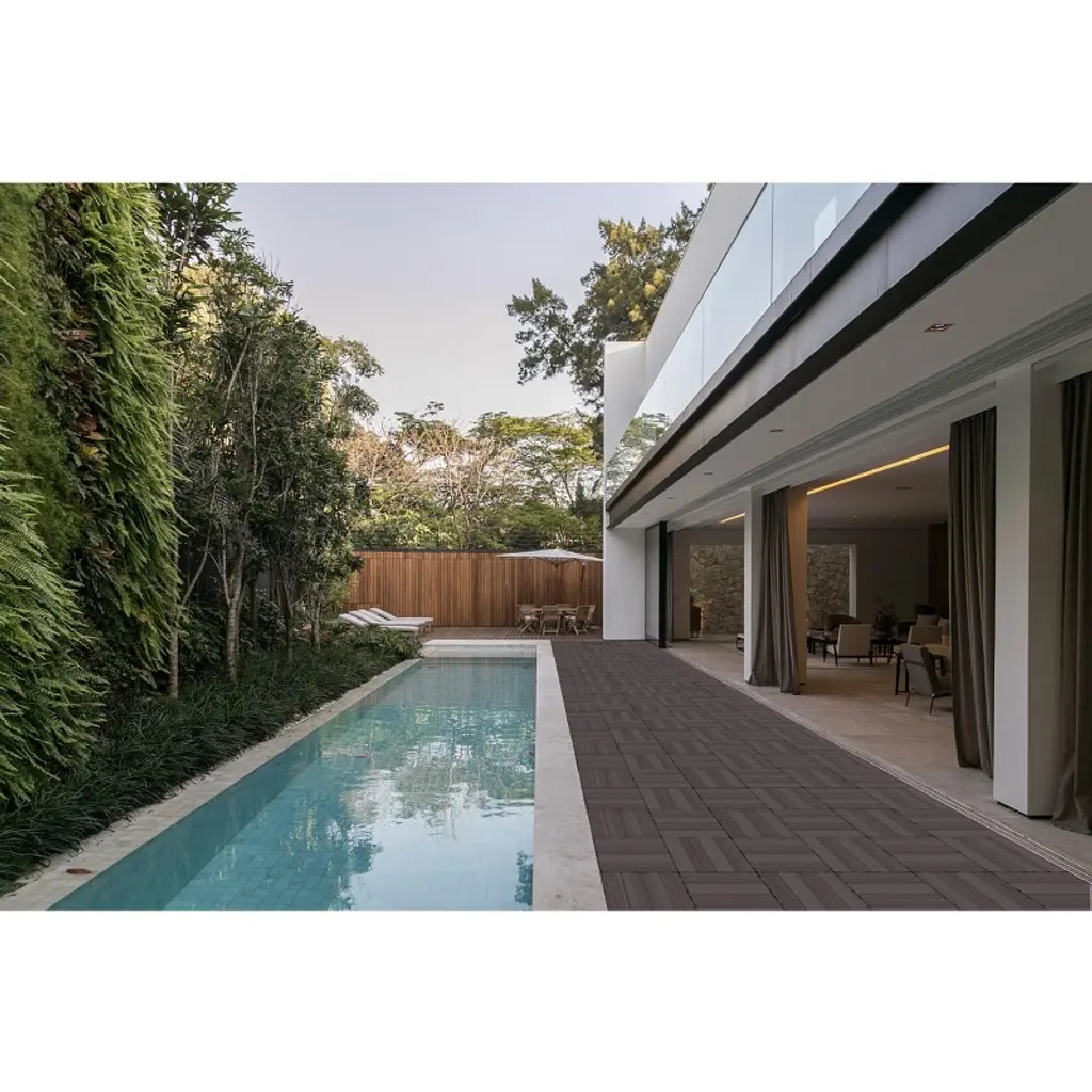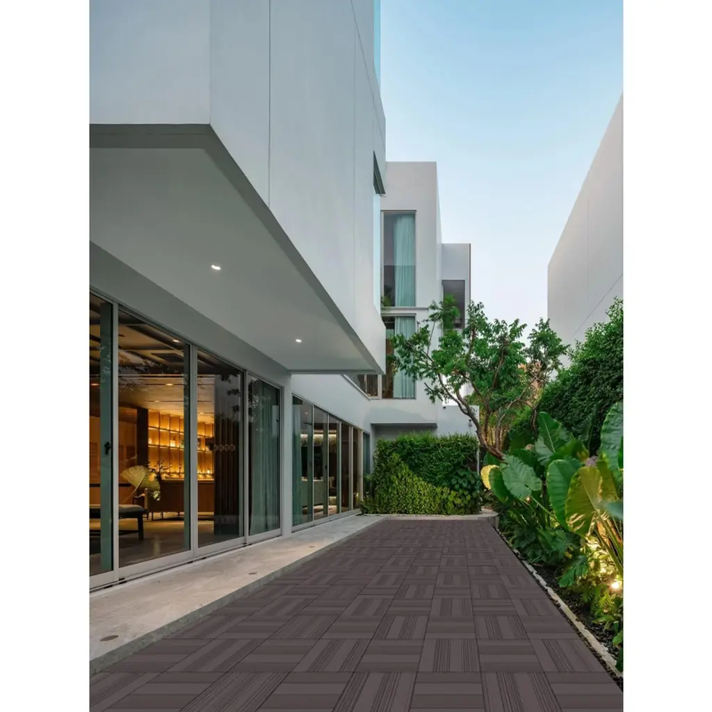 These 11.8" x 11.8" interlocking deck tiles are made from premium wood-plastic composite with a durable PE base for drainage and stability. Each tile is secured with 32 stainless screws, supporting up to 700 lbs while offering excellent water, slip, and UV resistance. Eco-friendly and FSC/GRS certified, these tiles are perfect for both indoor and outdoor use. With a simple interlocking design, installation is quick and tool-free, making them ideal for patios, balconies, pools, and more.