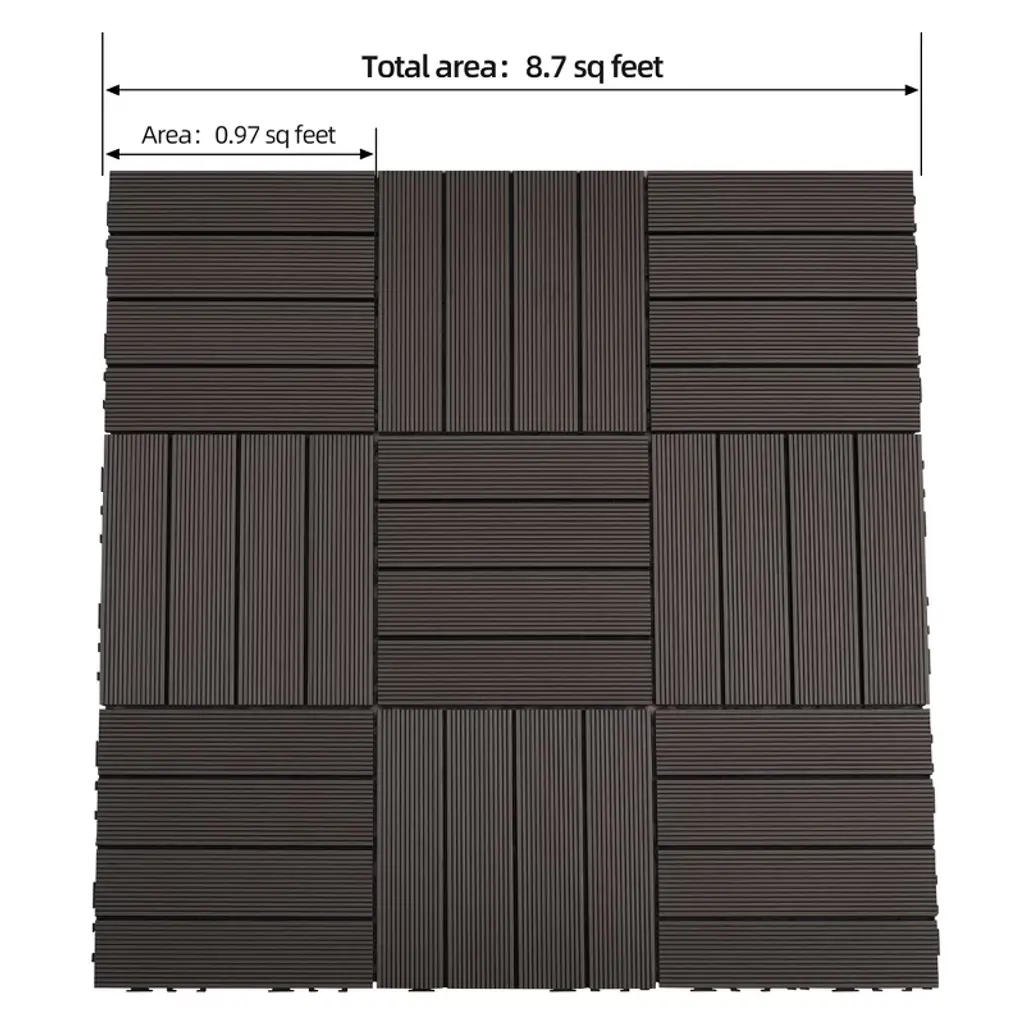 Cesicia 9 Pcs 11.8" X 11.8" Heavy-duty & Recyclable Wood-plastic Diy Interlocking Deck Tiles, For Outdoor And Indoor Use, Waterproof, Brown