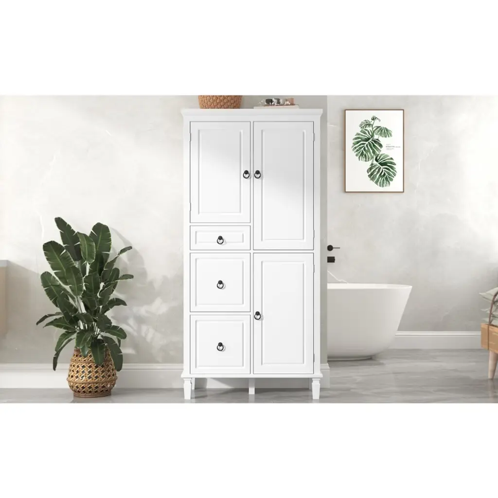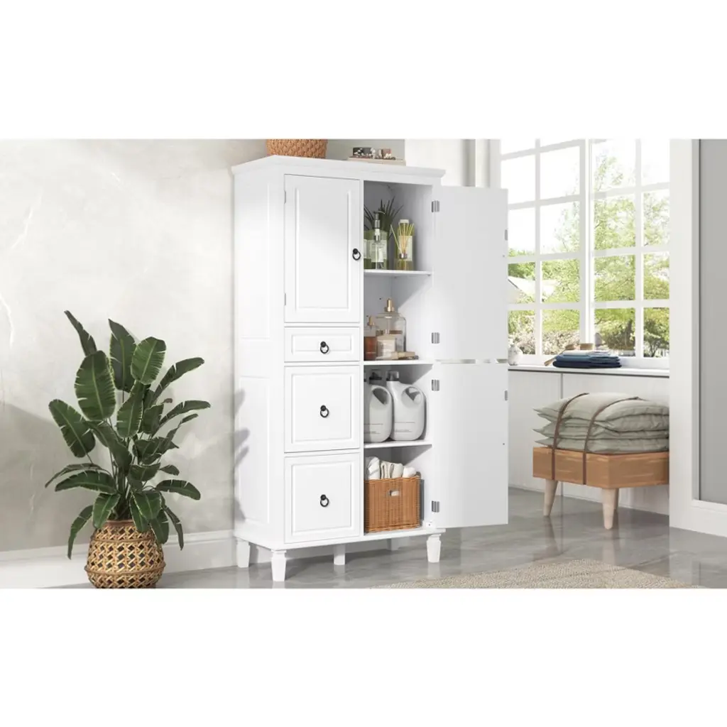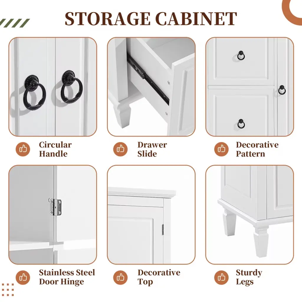 Cesicia Multi-functional Storage Cabinet White With Adjustable Shelves, 3 Drawers, And 3 Enclosed Compartments