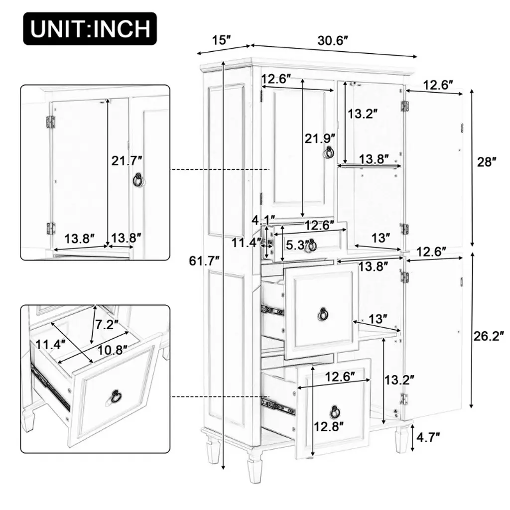 This cabinet features three spacious drawers in varying sizes and three enclosed storage compartments with doors, offering an exceptional combination of open and closed storage solutions. Whether you need to organize clothes, books, kitchenware, or office supplies, this cabinet provides ample space and unmatched versatility to keep your space tidy and clutter-free.
