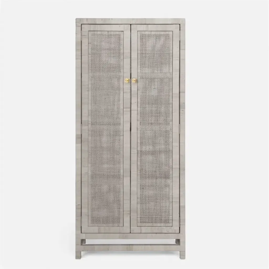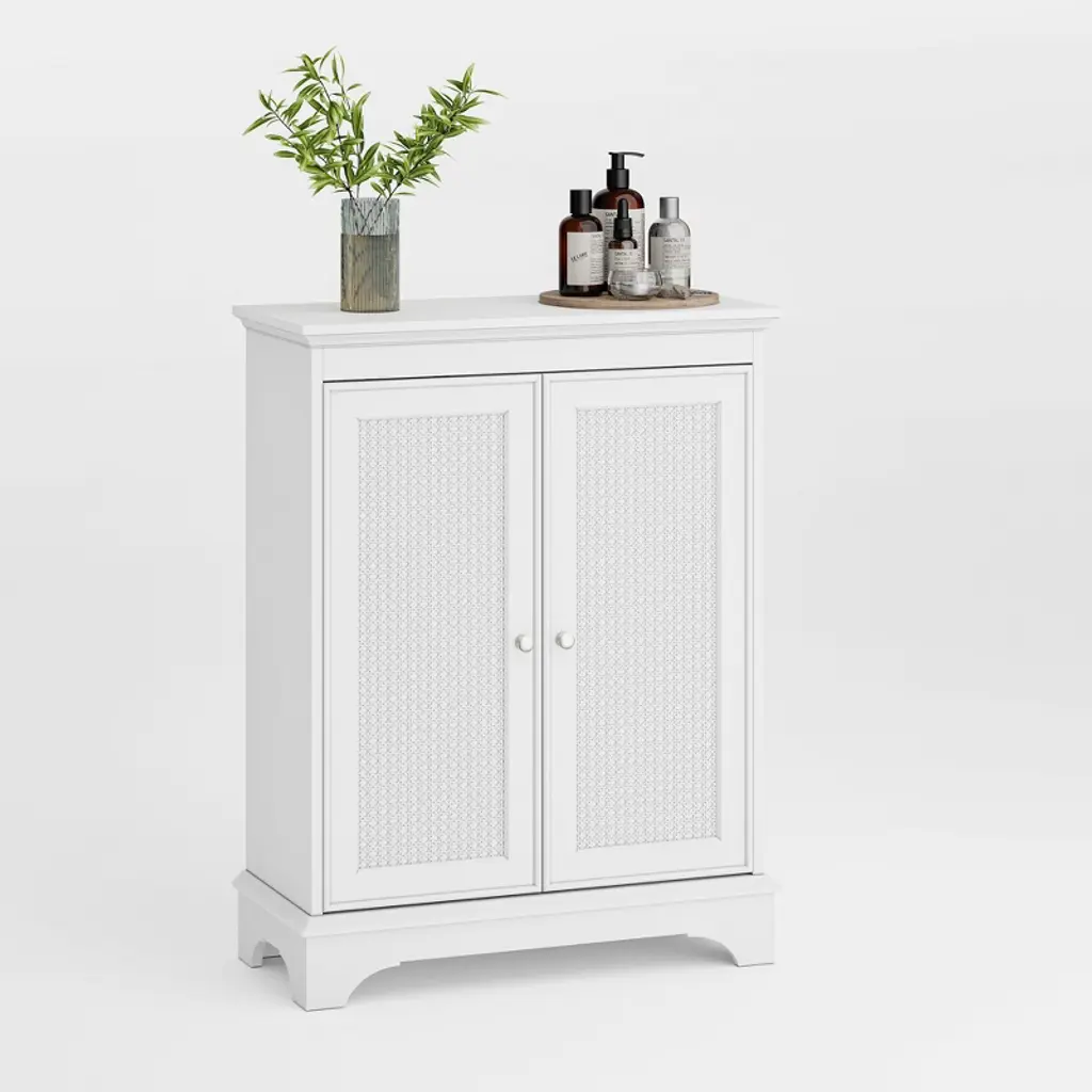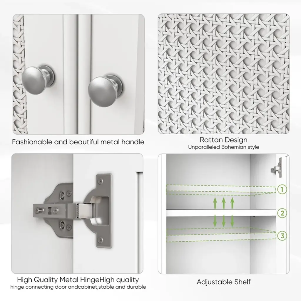 Cesicia Two Door Rattan Storage Cabinet White With Adjustable Partition Multifunctional Decorative Cabinet Suitable