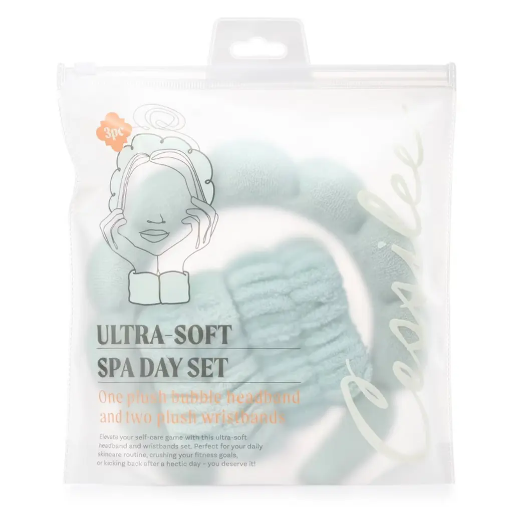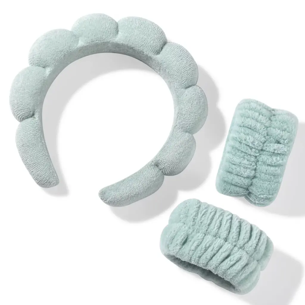 Indulge in the ultimate pampering experience with this ultra-soft spa day set, designed to elevate your relaxation routine. Featuring a plush bubble headband and two luxurious wristbands, this set is the perfect companion for your at-home spa experience. The bubble headband, with its gentle and soft fabric, effortlessly keeps your hair out of the way while adding a touch of fun and comfort. Whether you're applying your skincare, enjoying a soothing mask, or simply lounging, the headband provides a secure yet comfy fit. The two plush wristbands are ideal for keeping your wrists dry during skincare routines, adding extra comfort and style to your spa day. Crafted from high-quality, ultra-soft material, these accessories offer a cloud-like sensation that will make you feel like you’re in a professional spa. Pamper yourself with this set and transform your skincare rituals into a blissful, spa-like experience right at home. Perfect for self-care days, gifting, or even a luxurious treat for yourself.