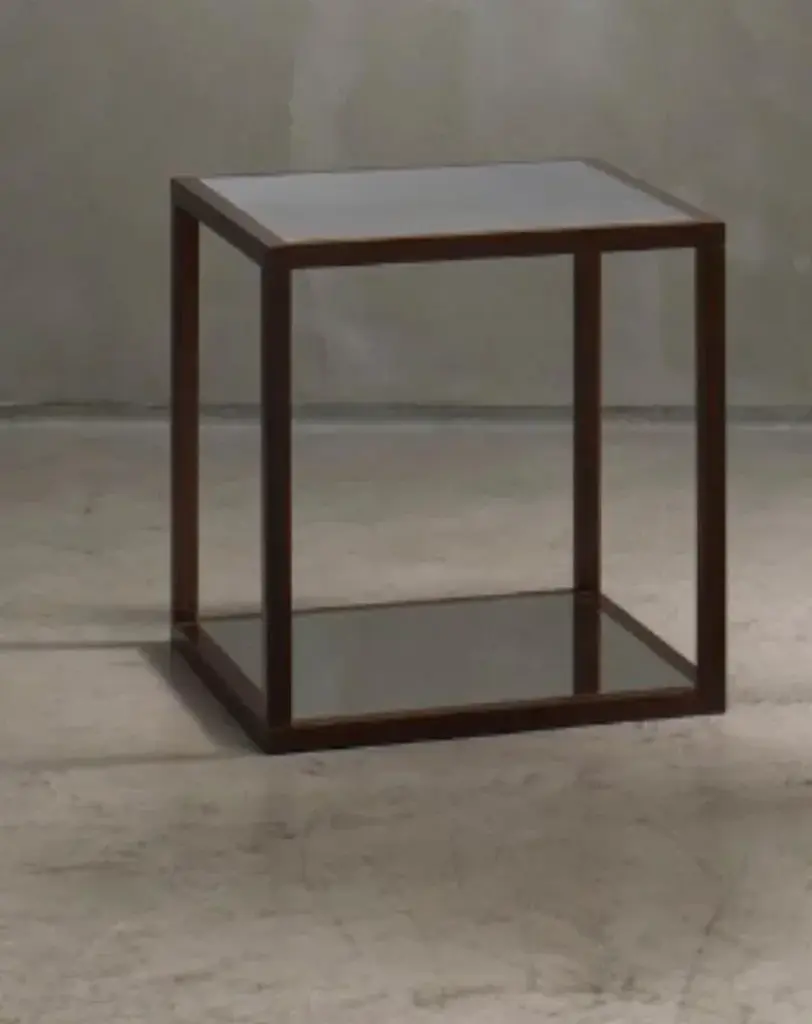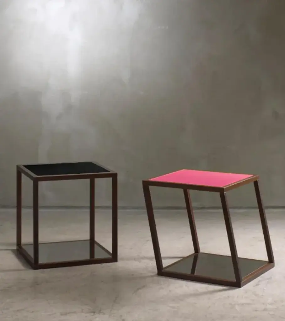 Set of 2 cf lt07.5 low tables by caturegli formica dimensions: w 38 x d 38 h 40 cm materials: wood, plastic the top of low tables changes its colour according to the point of view. S-steel structure available