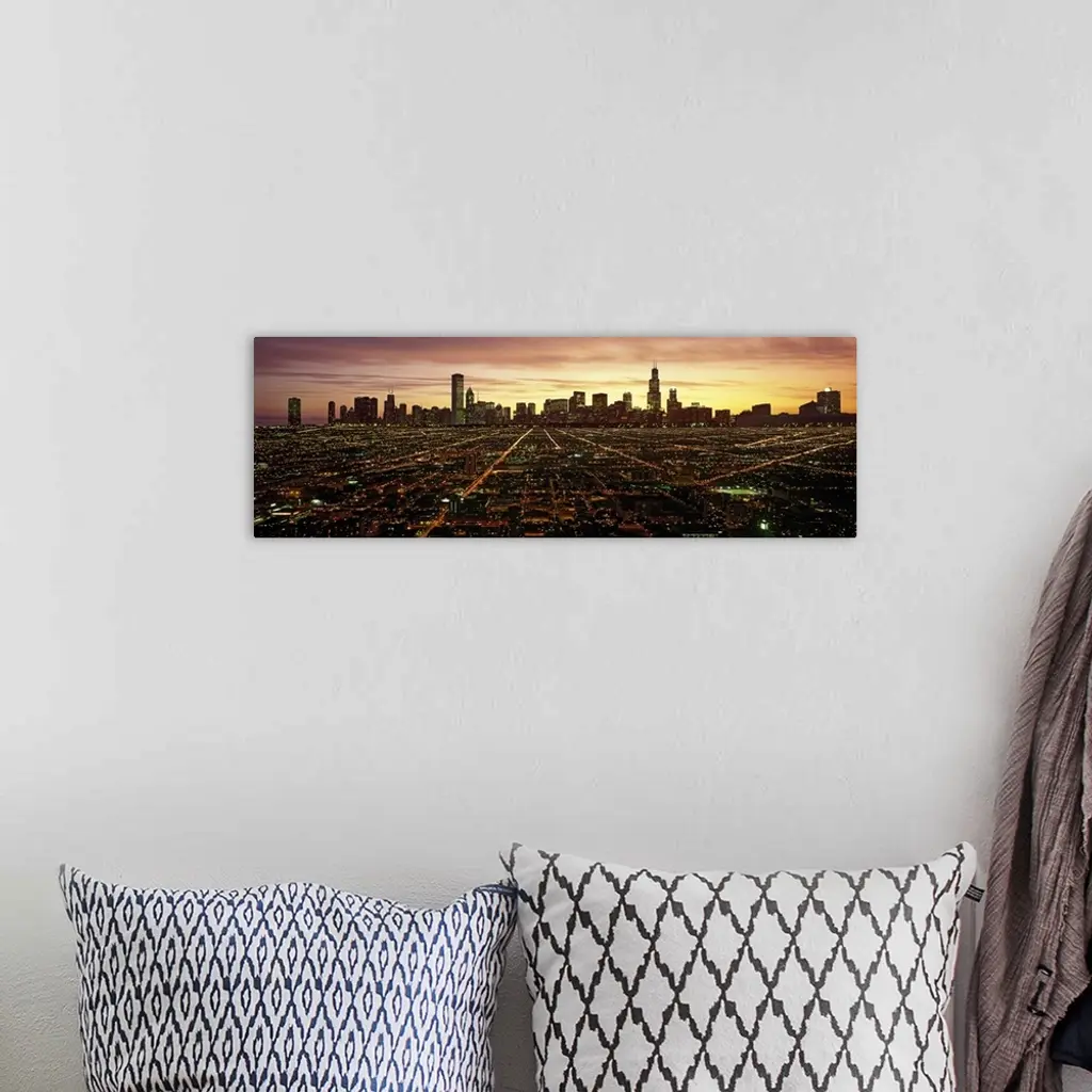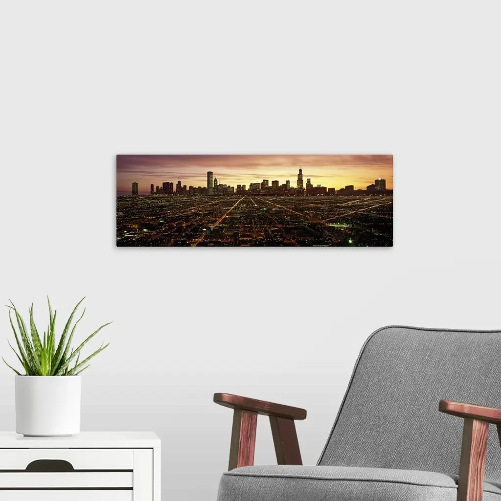 Cgi Composite, High Angle View Of A City At Night, Chicago, Cook County, Illinois,