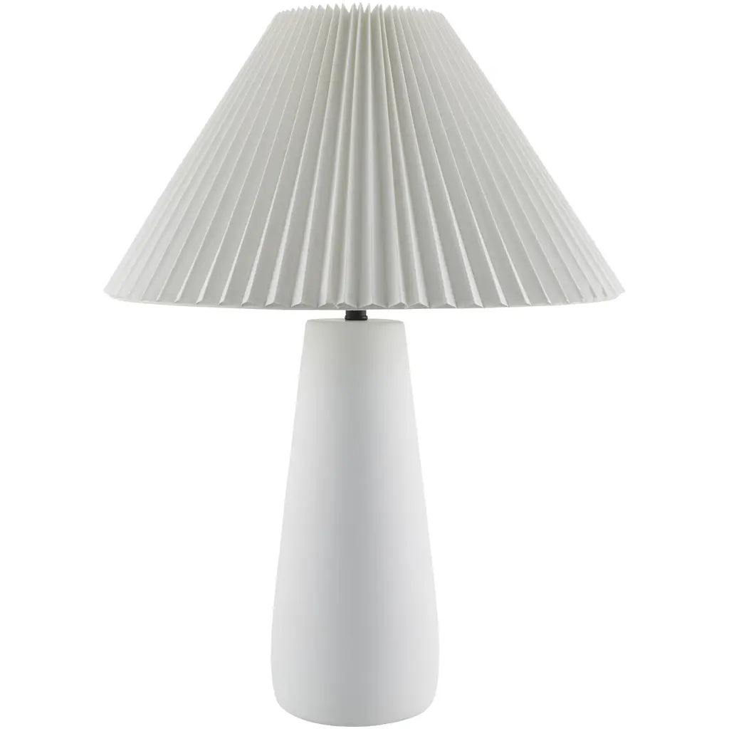 Elevate any space with the Chalmersr Bend White Lamp. Its textured matte-white ceramic base and refined white tapered pleated shade infuse contemporary allure into your decor. This lamp seamlessly harmonizes style and functionality, making it an exquisite addition to any room. Partial assembly may be required.