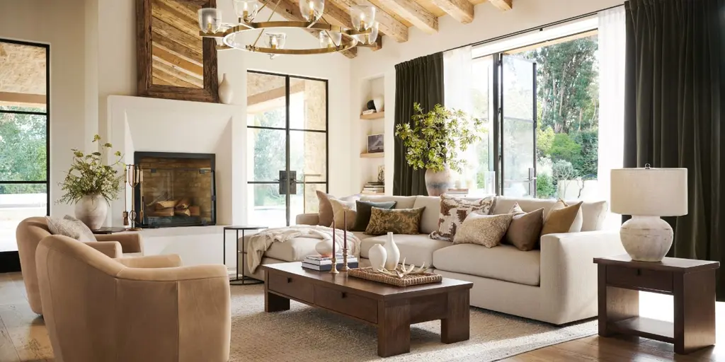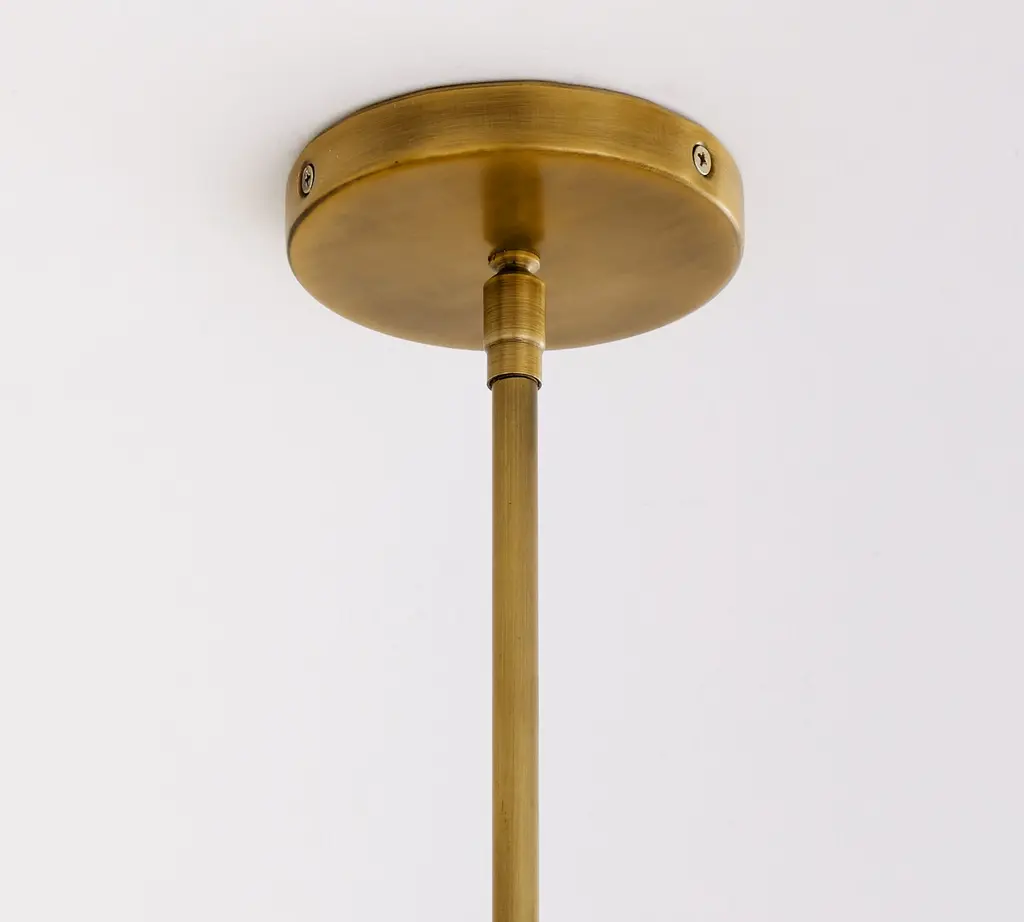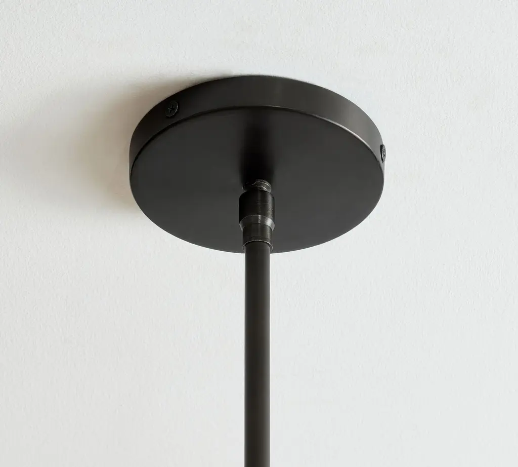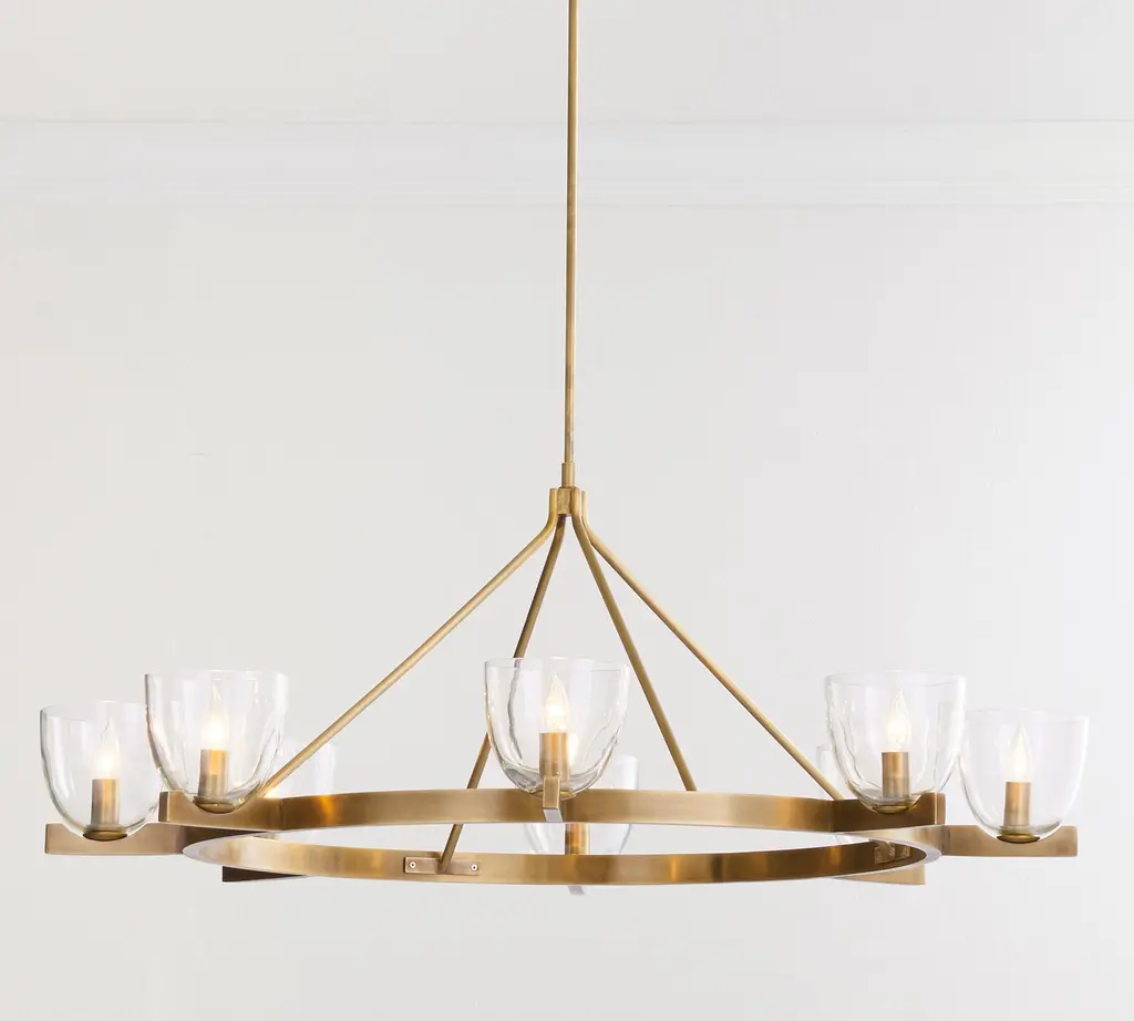 Curves and crisp lines combine for a fresh silhouette that works for a casual space or something more modern. Broad, cloche-shaped shades are sized and spaced on the solid metal frame to make the design feel more airy and open. It’s a substantial silhouette that still breathes.
