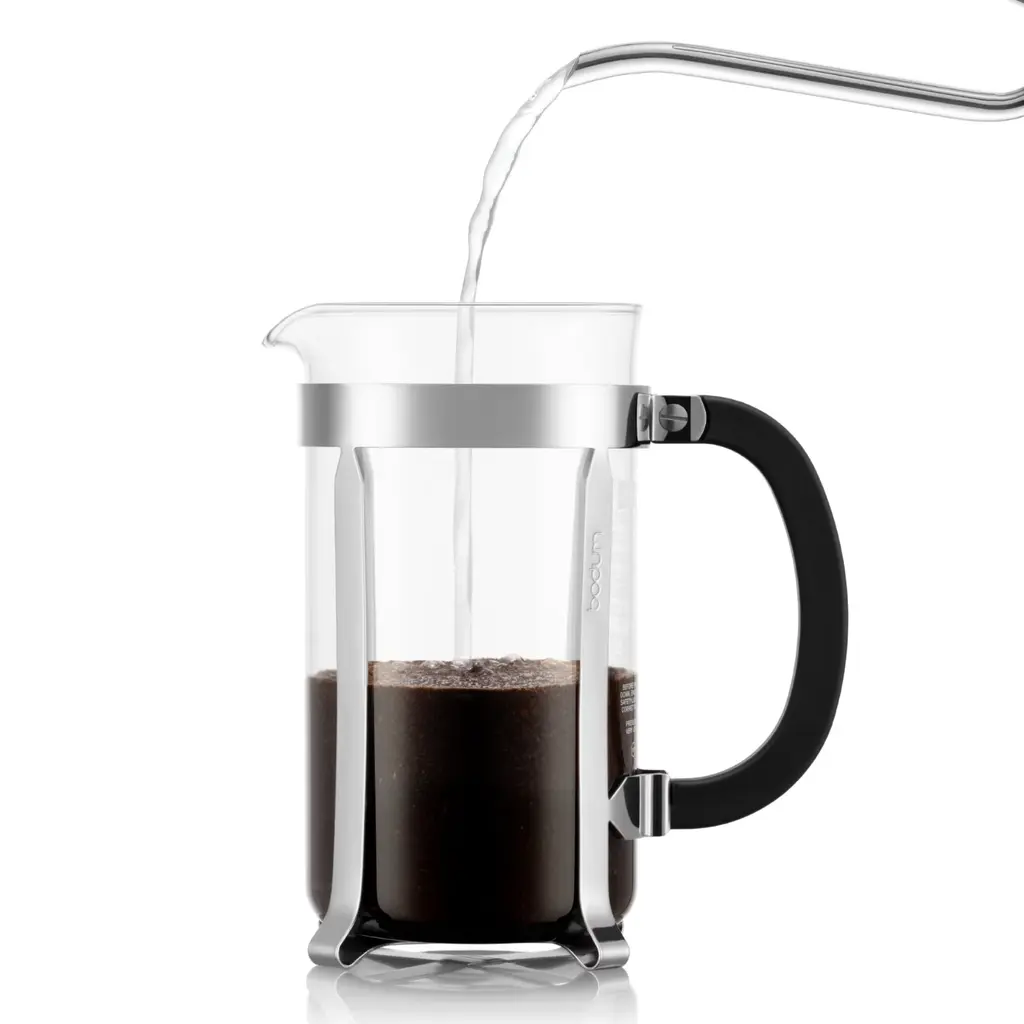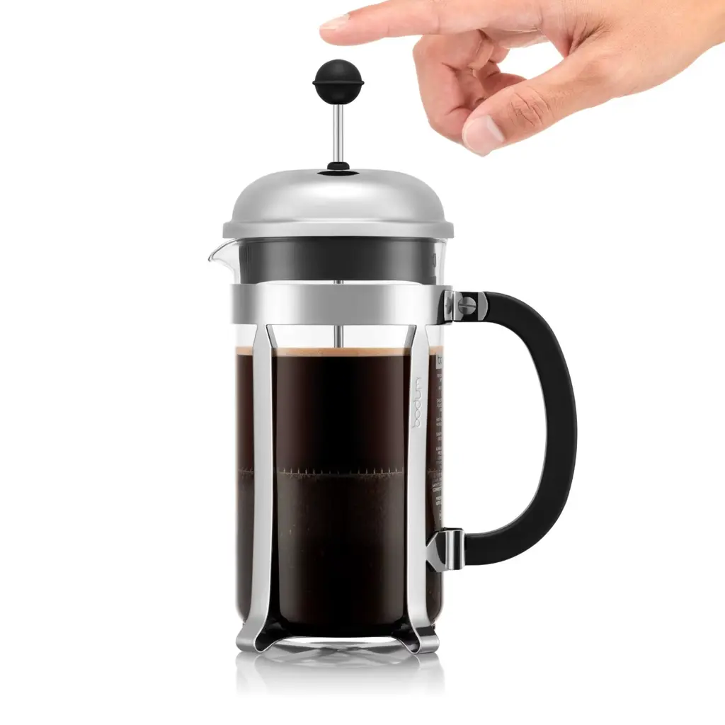 Discover the art of the perfect brew with the Chambord French press coffee maker. The French press system is beloved by coffee aficionados worldwide for its simplicity of brewing and purity of taste. And the Chambord is the original and best French press coffee maker.An icon of Bodum, the Chambord is synonymous with the Bodum name. The original design dates back to the pre-war period when the Italian Attilo Calimani developed the basic principle. Bodum founder, Jørgen Bodum, began work on his version of the French press in the 1970s, but it was the acquisition of Melior-Martin in 1991 – a company that produced a dome-shaped French press – that led to the development of the classic Chambord we know and love today.