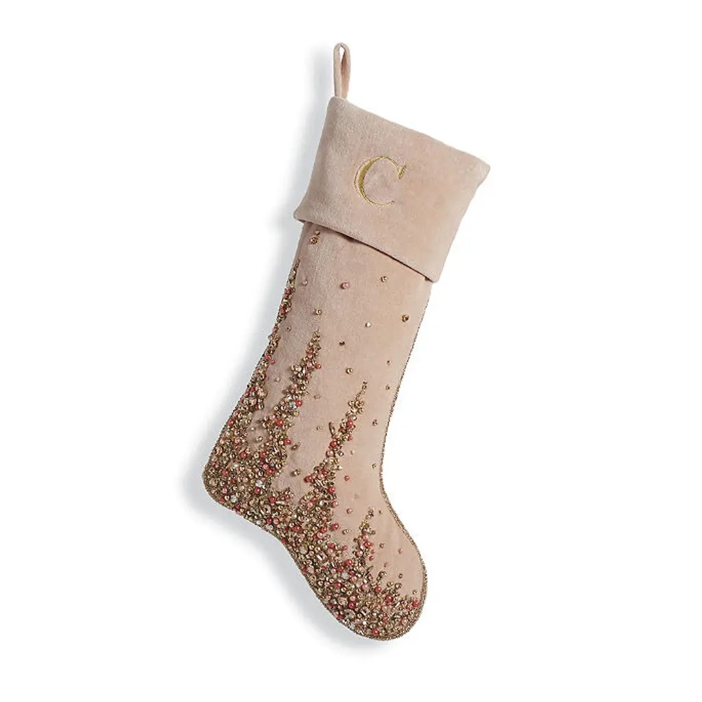 A sparkling blend of beads, faux pearls and faceted gemstones are generously applied by hand to rich velvet. The placement of the pink, gold and champagne embellishments brings a sense of fluidity to the classic stocking shape. 100% polyester velvet Hand-embellished with gemstones, sequins, beads and rhinestones Loop for hanging For indoor use Dry clean only Imported A Frontgate exclusive. At Frontgate, our primary focus is quality. We guarantee that every product we sell will stand up to the supreme test – our customers' satisfaction. To learn more about our policies, visit our Shipping & Processing, Returns & Exchanges and Warranty & Price Guarantee pages. A sparkling blend of beads, faux pearls and faceted gemstones are generously applied by hand to rich velvet. The placement of the pink, gold and champagne embellishments brings a sense of fluidity to the classic stocking shape. 100% polyester velvet Hand-embellished with gemstones, sequins, beads and rhinestones Loop for hanging For indoor use Dry clean only Imported A Frontgate exclusive. At Frontgate, our primary focus is quality. We guarantee that every product we sell will stand up to the supreme test – our customers' satisfaction. To learn more about our policies, visit our Shipping & Processing, Returns & Exchanges and Warranty & Price Guarantee pages.
